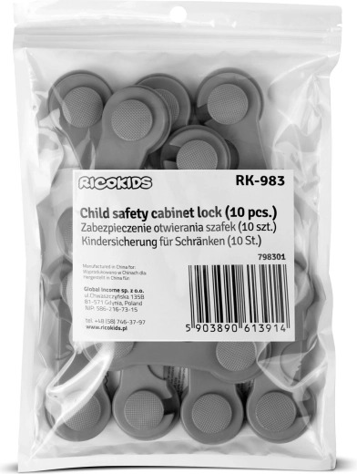Zorg voor een veilig thuis voor de kleintjes. De zelfklevende veiligheidssloten van RICOKIDS voorkomen effectief het openen van kasten, lades, koelkasten, magnetrons en wc-brillen. De eenvoudige tweedelige constructie met hoogwaardige 3M-lijm houdt stevig vast, maar kan indien nodig toch gemakkelijk worden verwijderd zonder meubels te beschadigen.