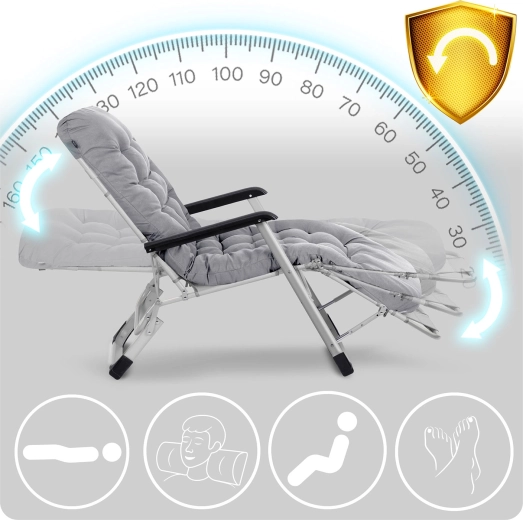 De verstelbare rugleuning en 3-traps voetensteun laten je de ideale positie vinden – van zitten tot volledig liggen voor maximale ontspanning.