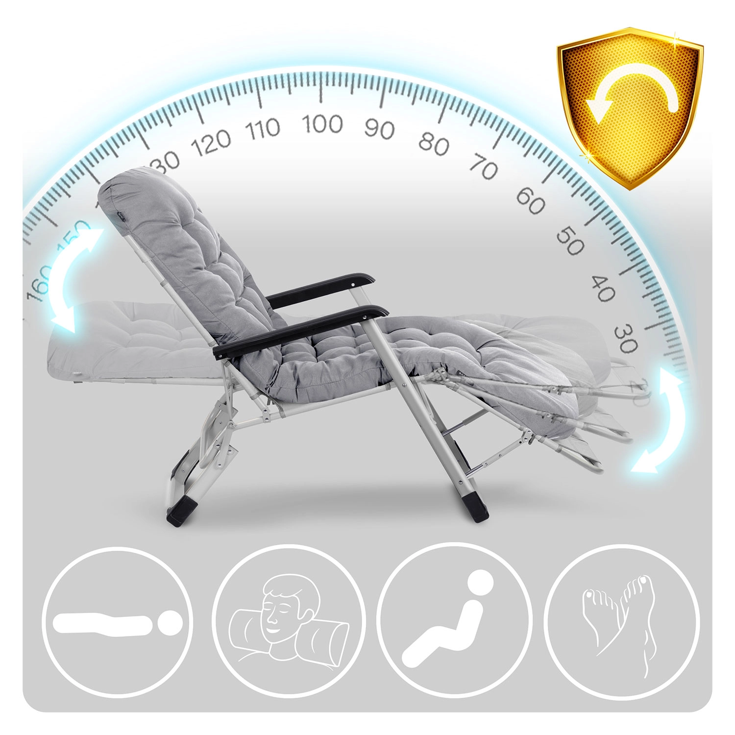 - Variabele ontspanning: vloeiend verstelbare rugleuning en 3 standen voor de voetensteun, mogelijkheid tot volledig liggen.