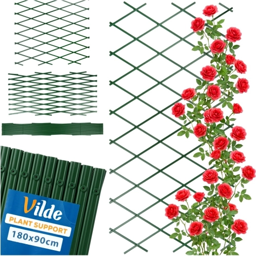 Praktisch tuin-trellis voor klimplanten met afmetingen 180 × 90 cm biedt een uitschuifbare constructie, duurzame kunststof uitvoering en eenvoudige montage. In het groen gaat het natuurlijk op in de tuin en ondersteunt het perfect rozen, klimop en druiven op tuin, balkon en terras.