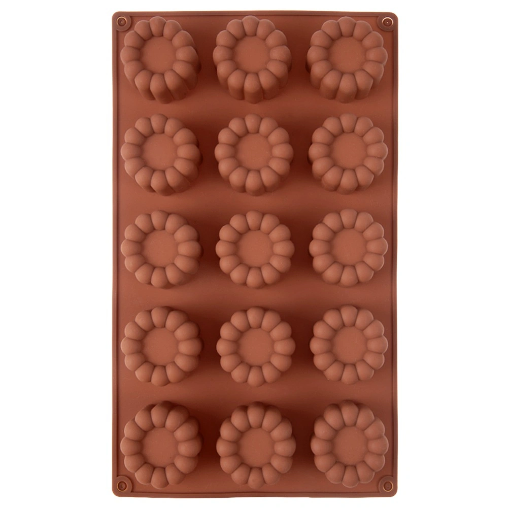 Deze bruine siliconen vorm is ideaal voor het snel en creatief bereiden van zelfgemaakte zoetigheden. Dankzij de 15 bloemetjesvormen behaal je uniforme en decoratieve resultaten bij het bakken van mini-cakejes, koekjes en het maken van chocolaatjes en pralines. Het siliconen materiaal is flexibel en antiaanbak, zodat je de lekkernijen eenvoudig uit de vorm haalt zonder te breken en zonder in te vetten of met bloem te bestrooien.