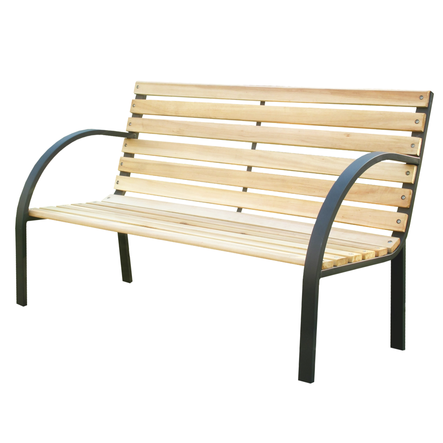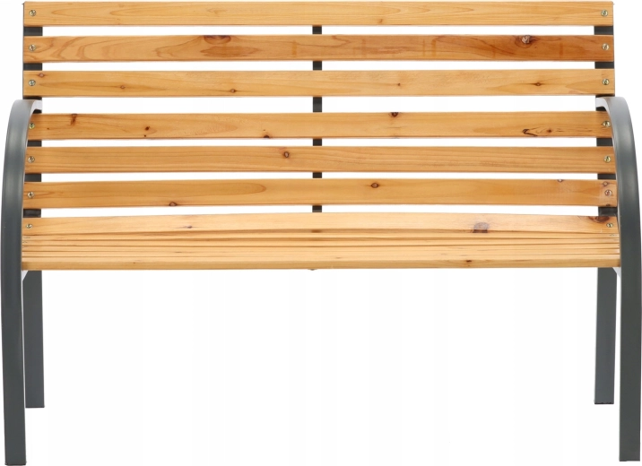 Deze tuinbank met afmetingen 120 × 60 × 82 cm combineert de natuurlijke uitstraling van hout met de robuuste stabiliteit van staal. Dankzij de drukgeïmpregneerde en gelakte houten latten en het grijze metalen frame trotseert hij weer en dagelijks gebruik. Past elegant bij de vijver, op het terras en in openbaar groen.