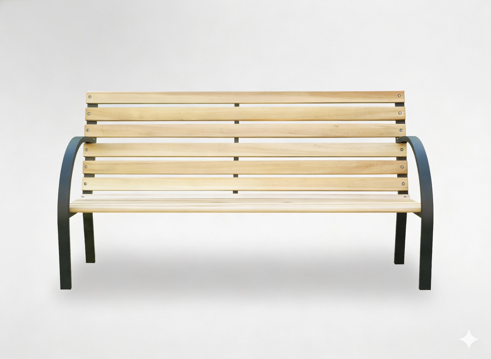 Stijlvolle houten tuinbank voor 2 personen die natuurlijk hout combineert met een stevig metalen frame voor een lange levensduur. Biedt een duurzame geschroefde constructie, poedergecoate metalen poten en een comfortabele, ventilerende zitting en rugleuning. Ideaal voor terras, pergola en park.