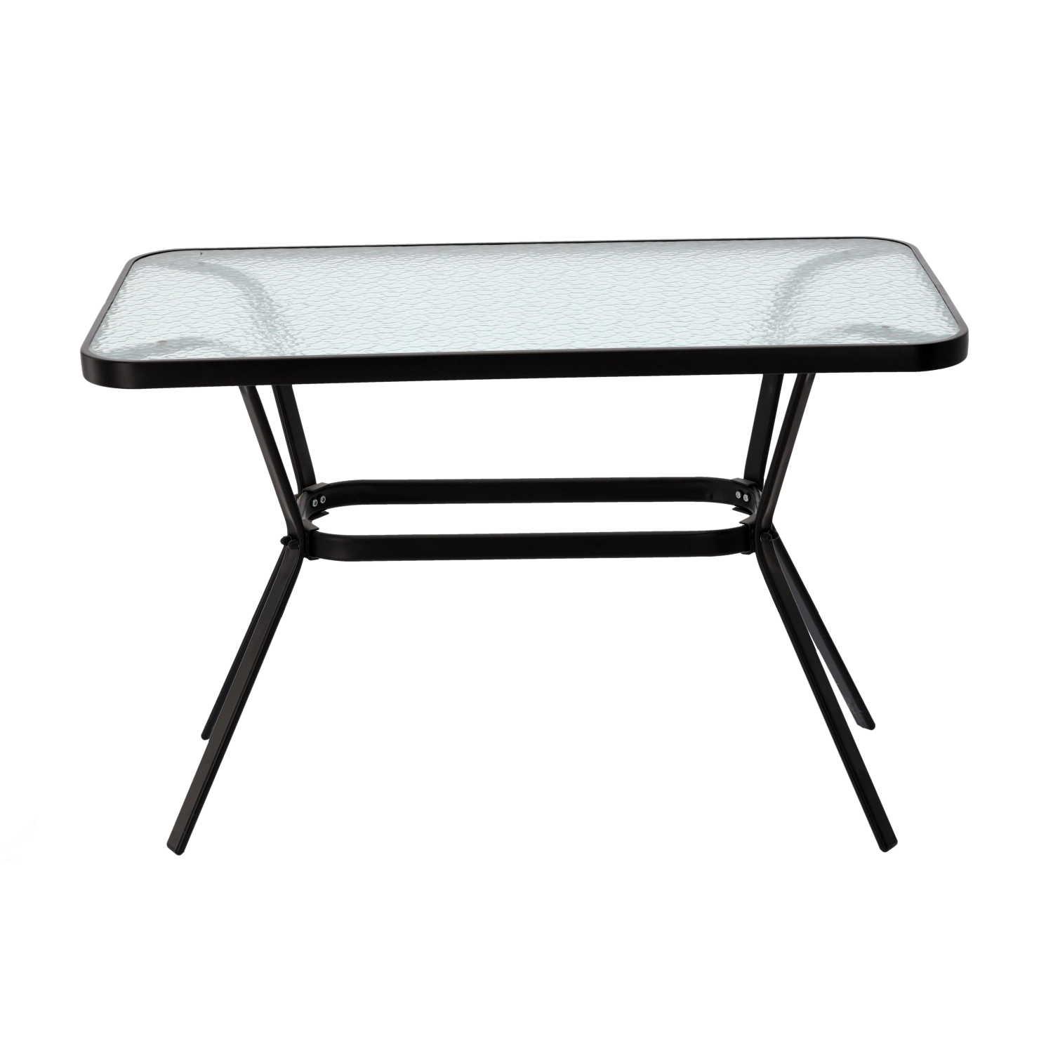 Creëer een comfortabele plek voor familielunches en gezellige momenten met vrienden. Deze rechthoekige tuintafel biedt een stevige en stabiele constructie met zwarte poedercoating en een elegant glazen blad dat elke buitenruimte een lichte en stijlvolle uitstraling geeft.