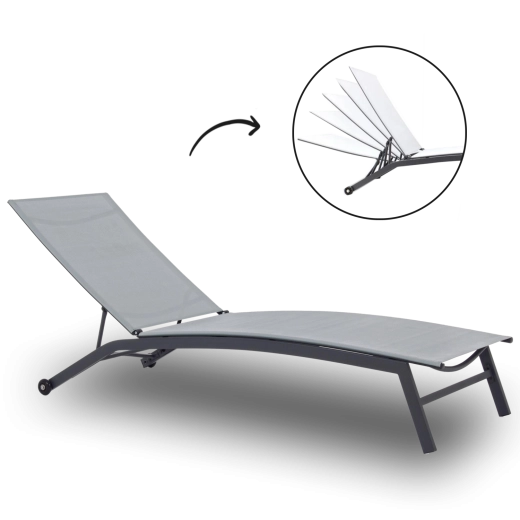 Geniet van welverdiende ontspanning buiten met dit stijlvolle grijze tuinligbed. Dankzij de verstelbare rugleuning en de optie voor een volledige ligstand vind je moeiteloos de ideale positie. De duurzame Textilene-stof en het stalen frame met poedercoating garanderen een lange levensduur, zelfs bij gebruik gedurende het hele seizoen.