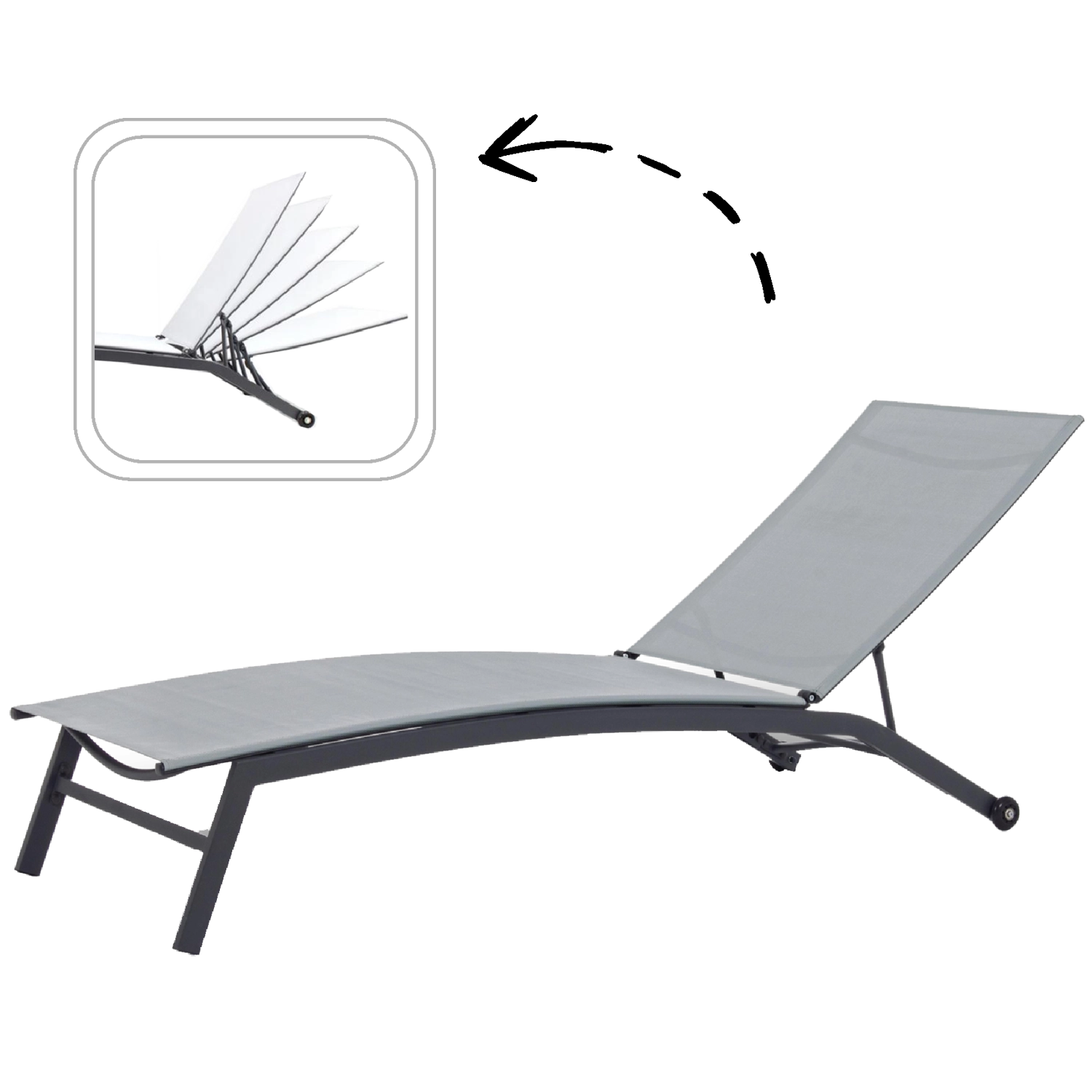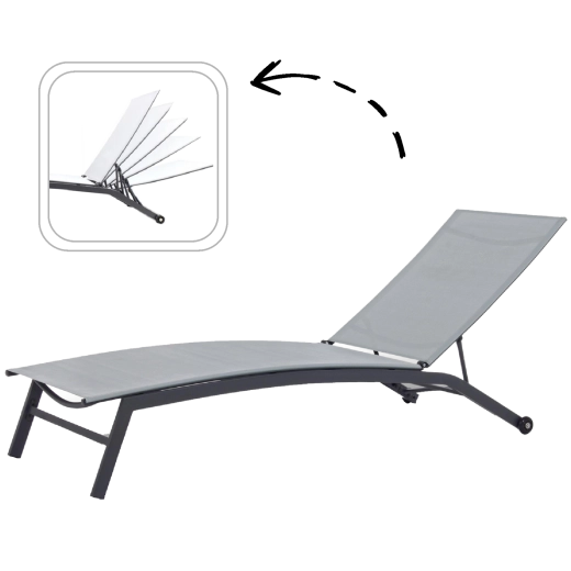 Kies eenvoudig de ideale positie, van relaxte halfzittende stand tot volledige ligstand voor zonnebaden of rust.