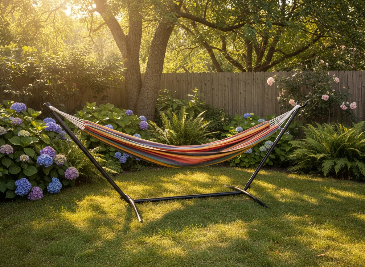 Dankzij de universele haken is de standaard compatibel met verschillende soorten hangmatten en door het eenvoudige demonteren is hij ook geschikt voor seizoensgebruik en opslag. Ideaal voor tuin, terras, balkon of aan het meer – overal waar je jouw rustplek wilt hebben.