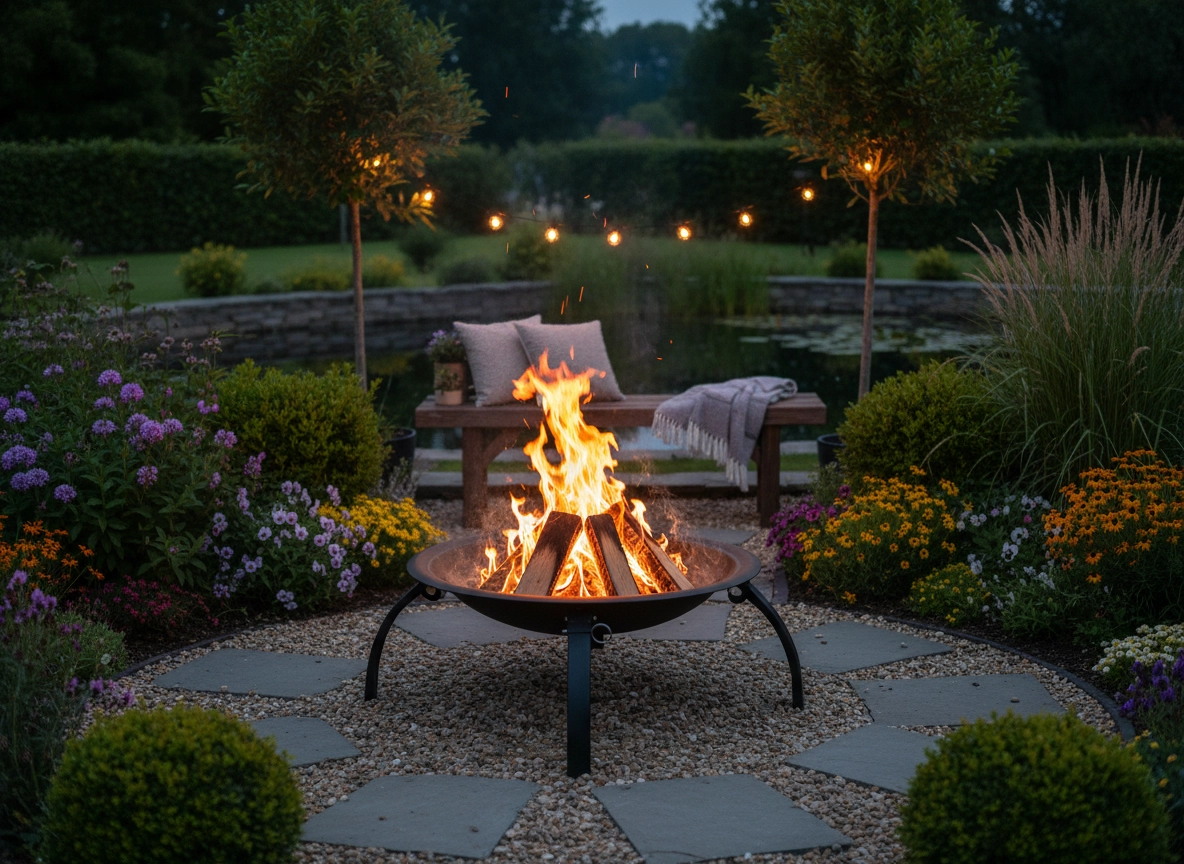 Er is een pook met comfortabel houten handvat inbegrepen voor veilig bijvullen en hanteren van het vuur. De open vuurschaal zorgt voor goede luchttoevoer, een stabiele vlam en gelijkmatige warmteafgifte – ideaal voor een gezellige zit in de tuin, grillen op een rooster of het roosteren van worstjes.