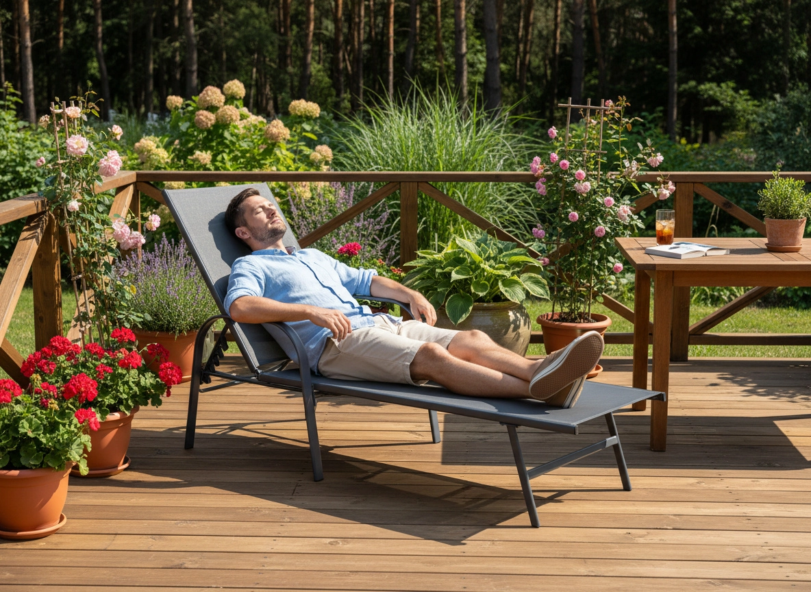 Dankzij de verstelbare rugleuning stel je eenvoudig de ideale hoek in om te lezen, te ontspannen of te zonnen. Het stabiele frame met doordachte details is klaar voor dagelijks gebruik in de tuin, bij het zwembad of op het balkon.