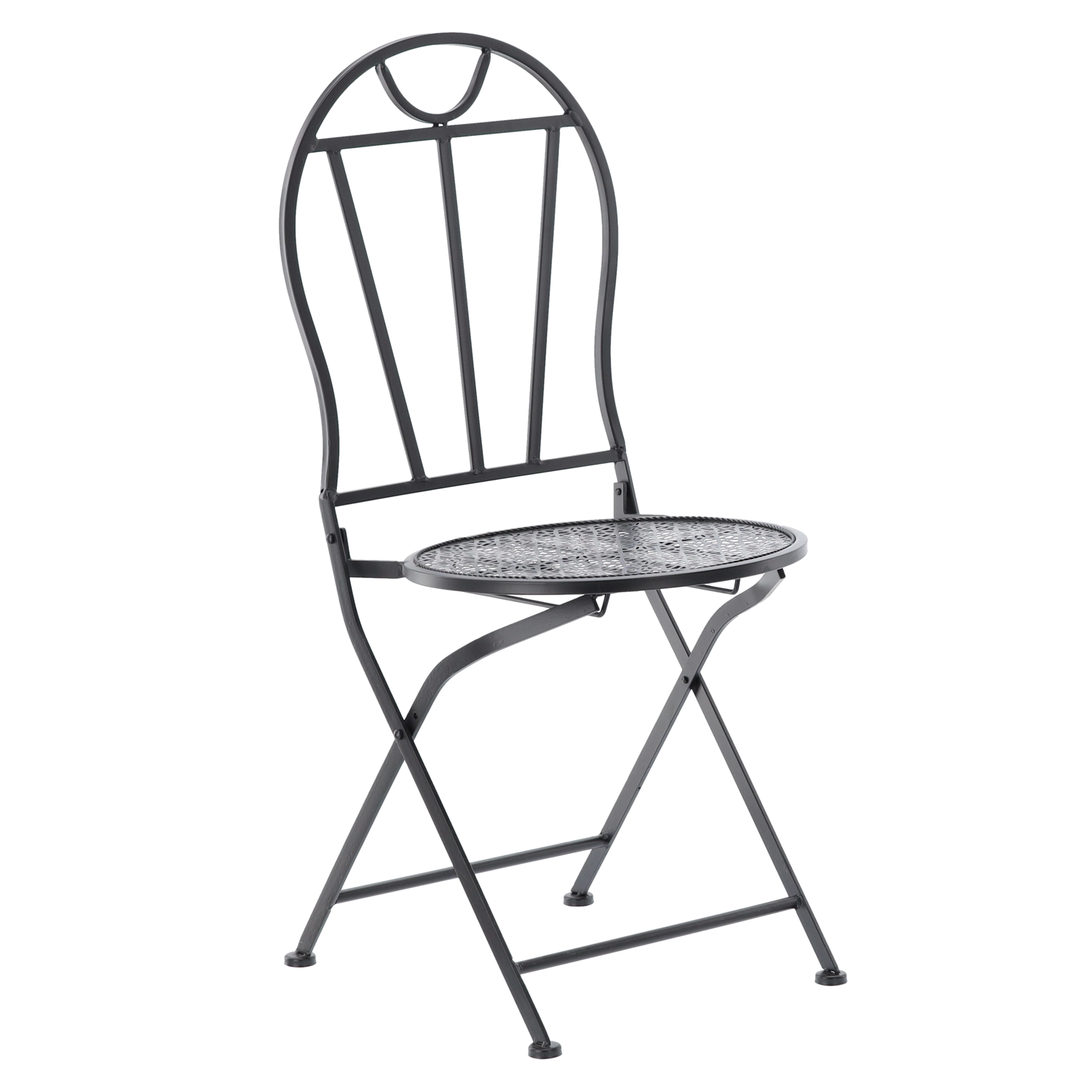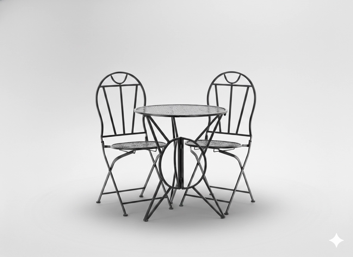 De compacte 3-delige set SUSAN valt op door de decoratieve uitsparingen en de tijdloze vintage look. Metalen X-verstijvingen zorgen voor stabiliteit, terwijl het opklapmechanisme van zowel stoelen als tafel snel opruimen en ruimtebesparing mogelijk maakt. Ideaal voor kleine balkons, stadsterrassen en tuinhoekjes.