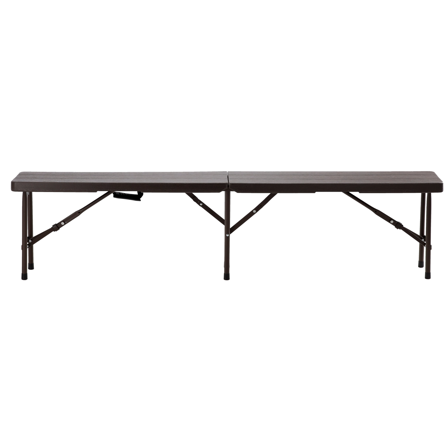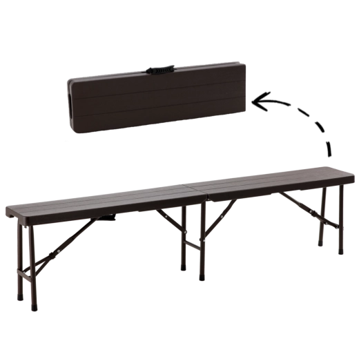Het robuuste stalen frame met dwarsversteviging zorgt voor stabiliteit, terwijl antislippootjes het oppervlak beschermen en verschuiven voorkomen. De bank vouwt op tot een koffermodel met handgreep, zodat je hem eenvoudig kunt dragen en opbergen in auto of kast.