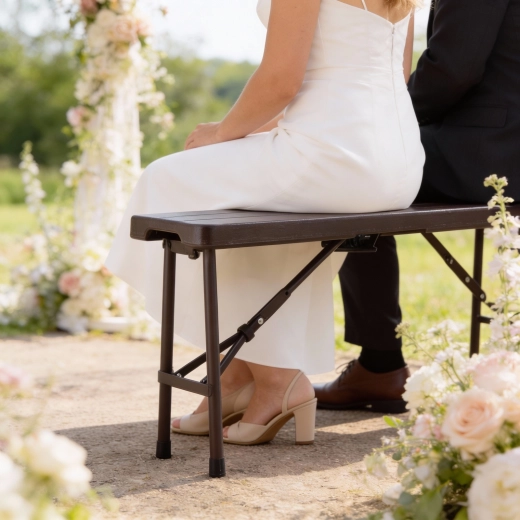 Zoek je een veelzijdige zitoplossing voor buiten en binnen? Deze bruine opvouwbare bank 180 × 25 × 43 cm combineert comfort, mobiliteit en duurzaamheid. De zitting van HDPE met houtdecor is stevig, gemakkelijk te reinigen en staat elegant in elke omgeving – van tuinfeest tot bruiloft.