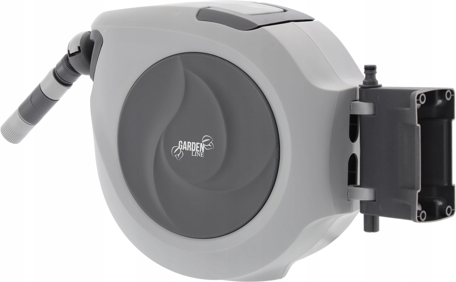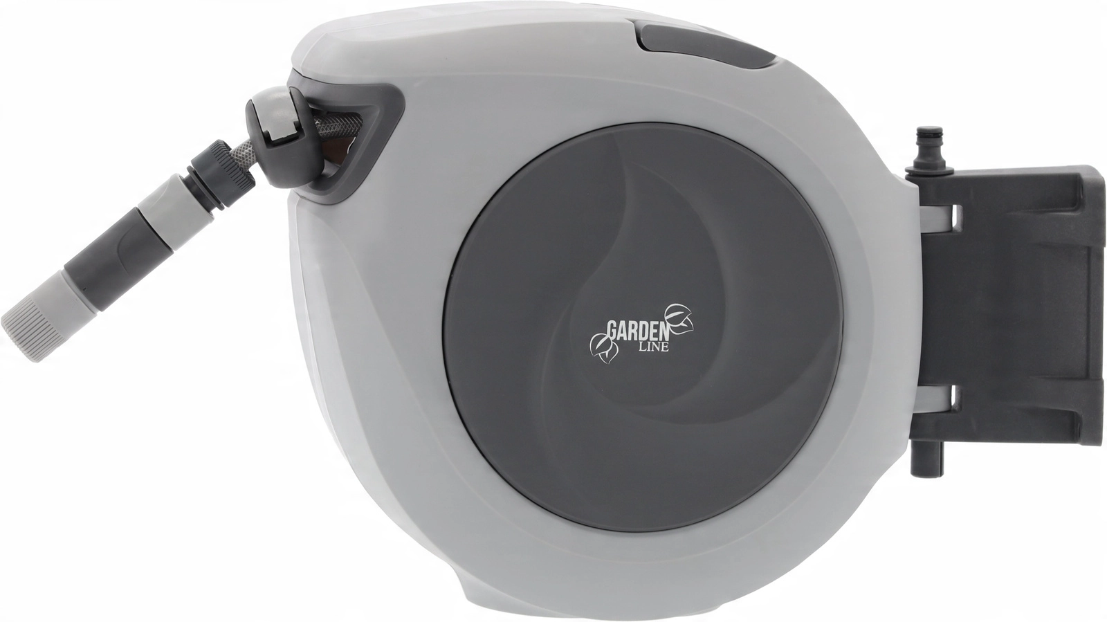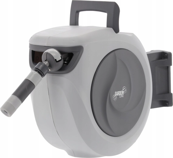 De automatische slanghaspel is de ideale keuze voor comfortabel en veilig besproeien. De gesloten behuizing van duurzaam plastic beschermt de slang, de veeraandrijving zorgt voor soepel oprollen en de automatische blokkering maakt het mogelijk de slang op elke gewenste lengte te stoppen. De draaibare beugel met een zwaaibereik van 180° vergemakkelijkt het werk in de hele tuin zonder dat de slang verdraait.