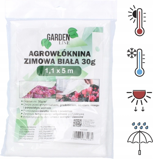 Praktisch beschermend agrotextiel voor winter en vroeg voorjaar beschermt planten betrouwbaar tegen kou, sneeuw, wind en hagel. Dankzij een gramgewicht van 30 g/m² creëert het een stabiel microklimaat, verhoogt het de temperatuur en luchtvochtigheid onder de afdekking, is UV-bestendig en laat licht, water en lucht door voor een gezonde groei.