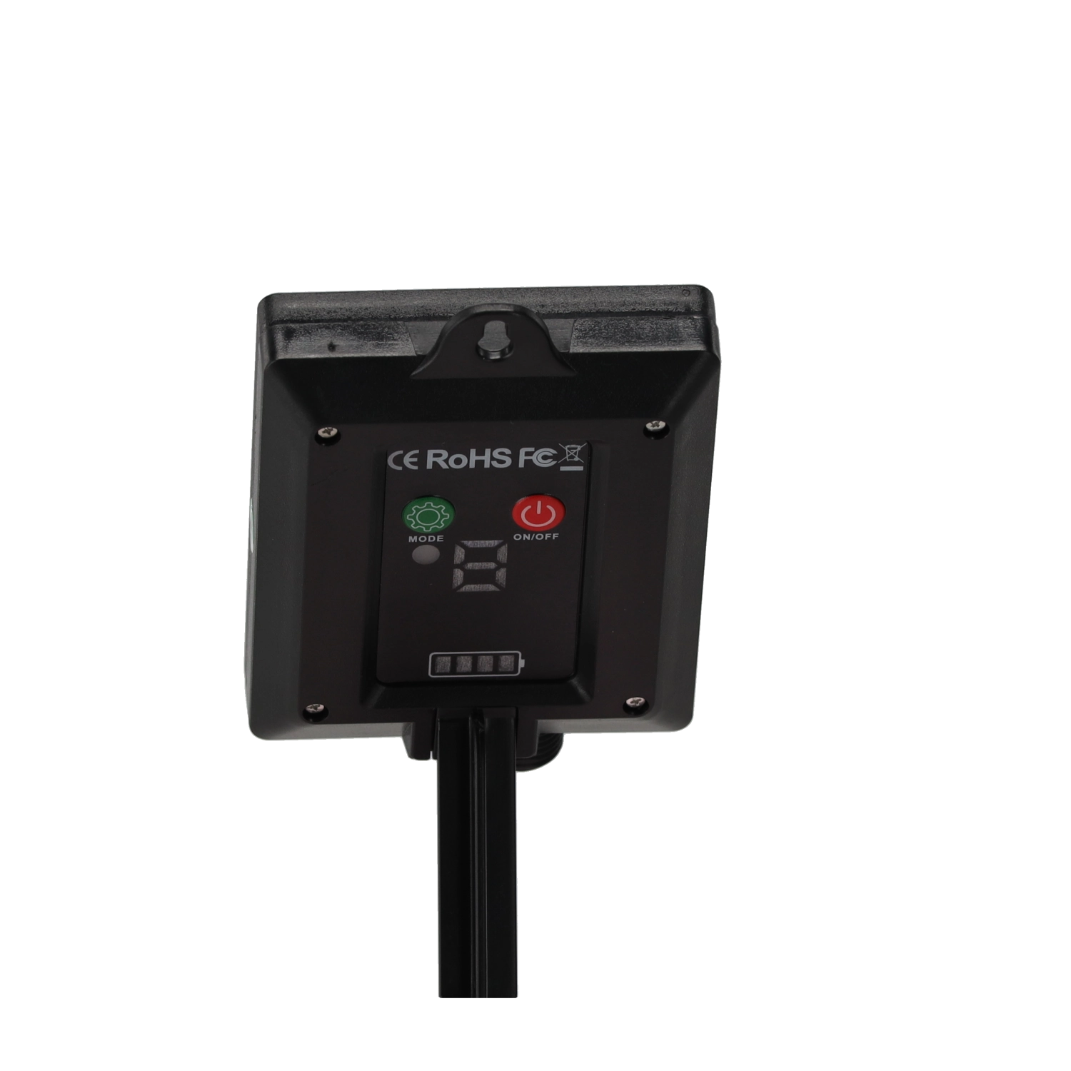 De regelunit met display en knoppen maakt het inschakelen, kiezen van modi en dagelijks gebruik buitenshuis eenvoudig.