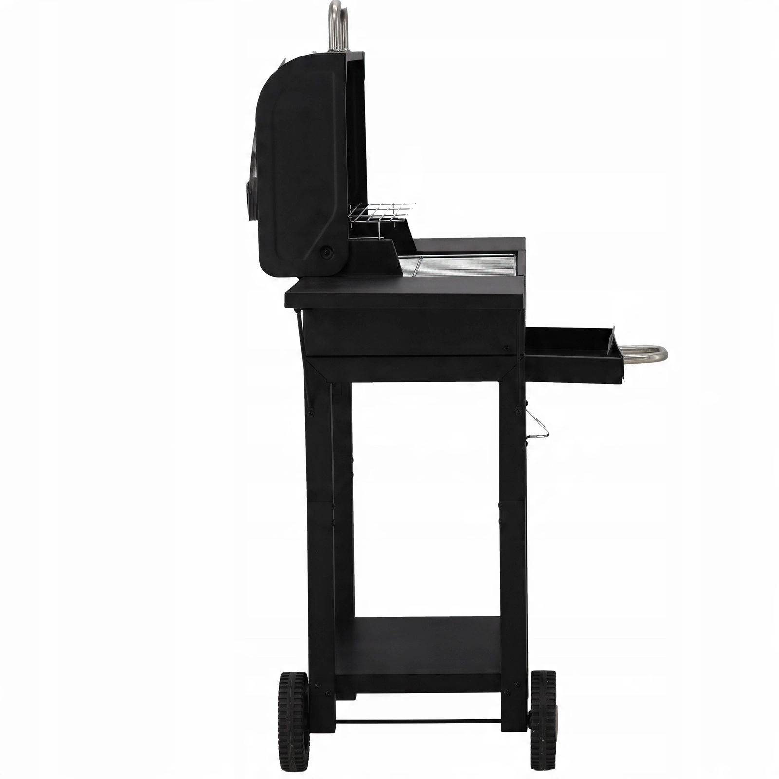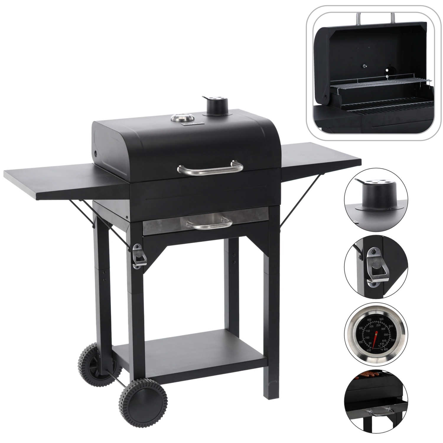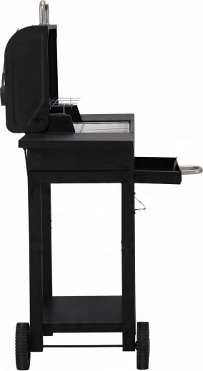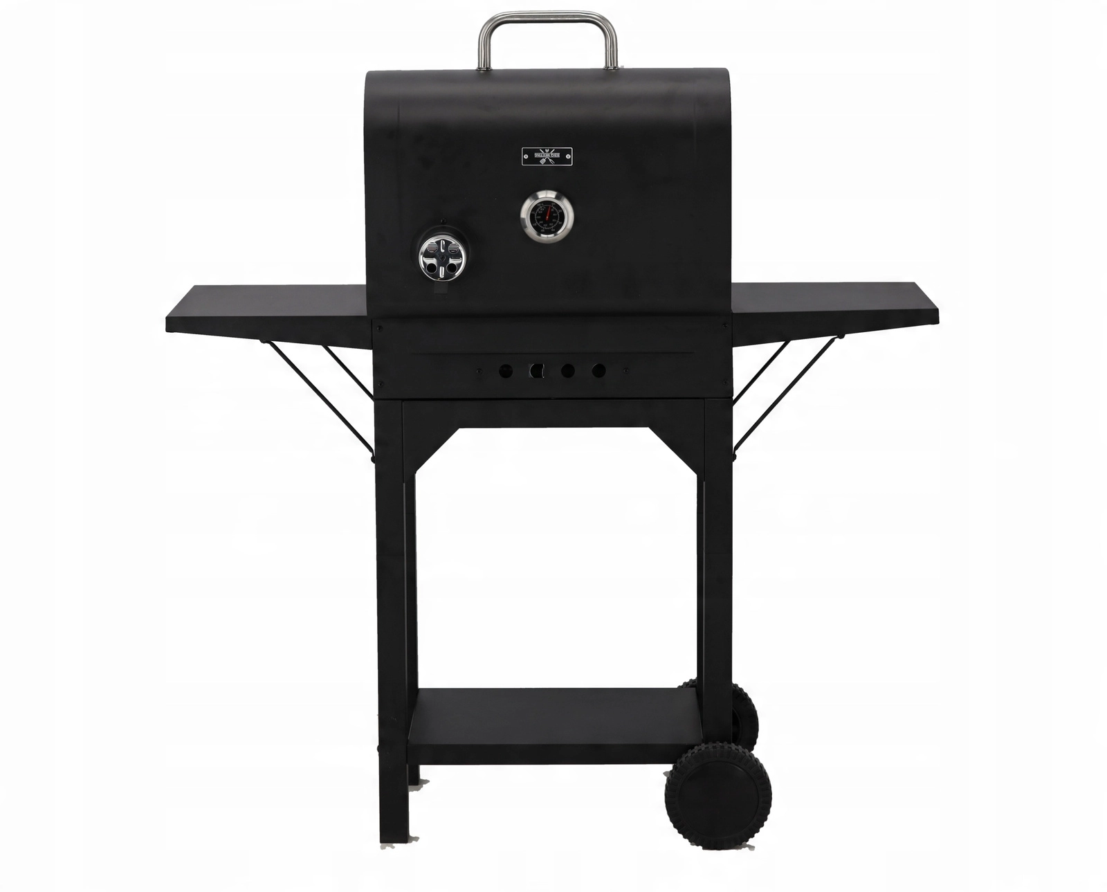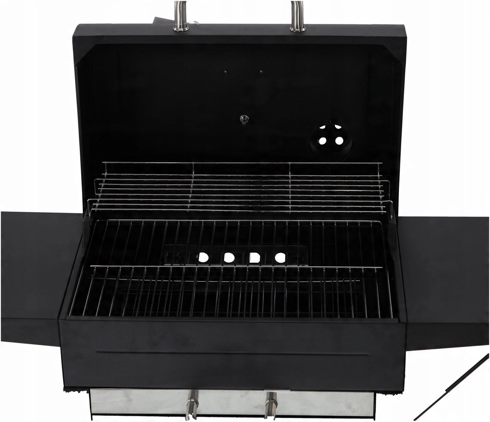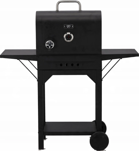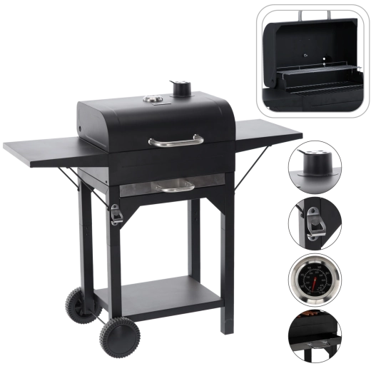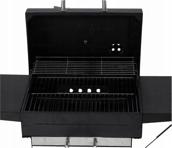 Geniet van ontspannen grillen met een barbecue die een stabiele constructie, praktische details en een elegant uiterlijk combineert. De behuizing van koolstofstaal met hittebestendige coating weerstaat hoge temperaturen en weersinvloeden, terwijl het gietijzeren rooster van 31,5 × 46,5 cm de warmte gelijkmatig verdeelt voor sappige steaks, groenten en vis. De thermometer in het deksel tot 300 °C geeft je volledige controle over het resultaat.