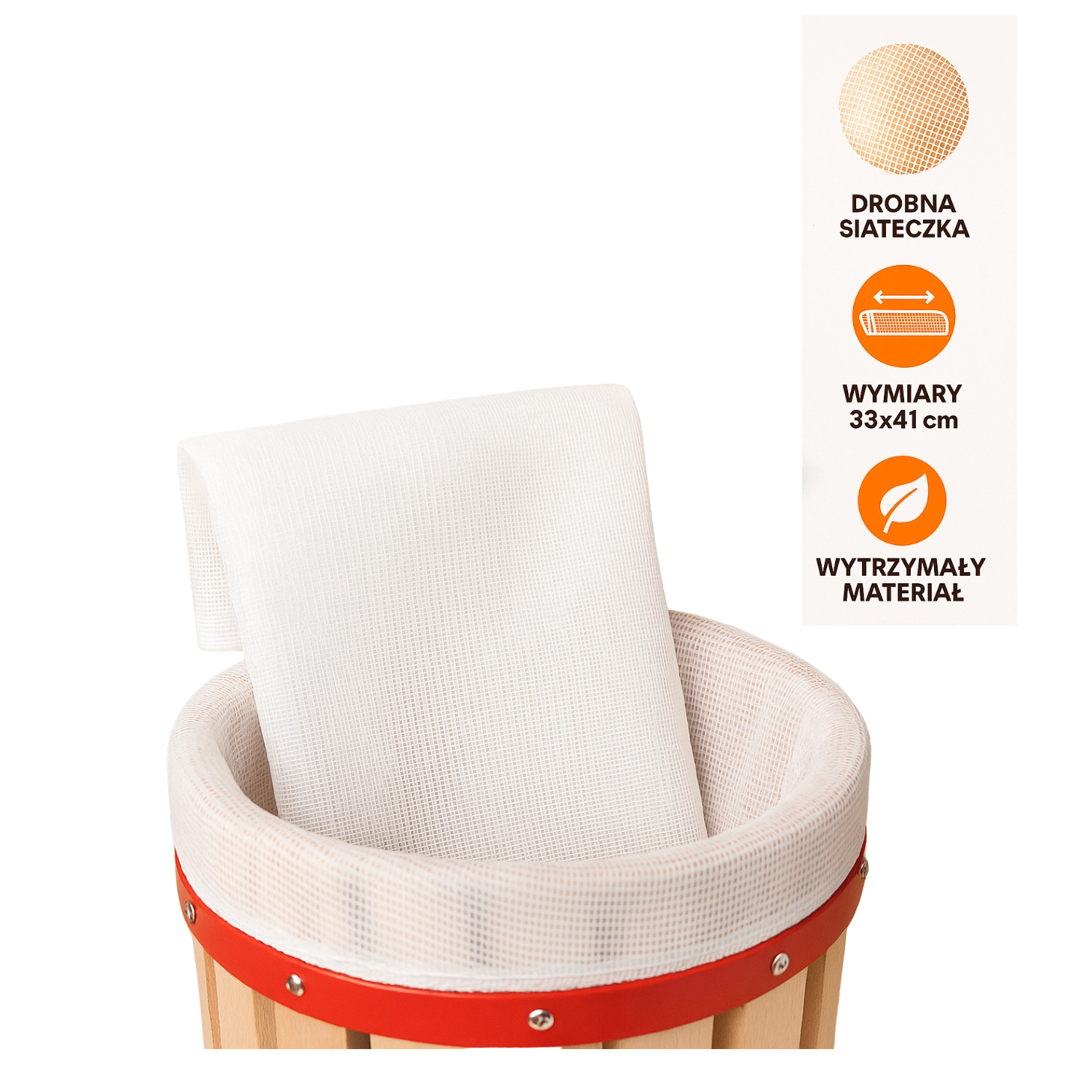 Bij gebruik van dit filter blijft de pulp in de mand van de pers, wat het schoonmaken vereenvoudigt en de algehele efficiëntie van het persen verhoogt. Het materiaal is ontworpen om de uiteindelijke smaak niet te beïnvloeden en bestand te zijn tegen herhaald gebruik.