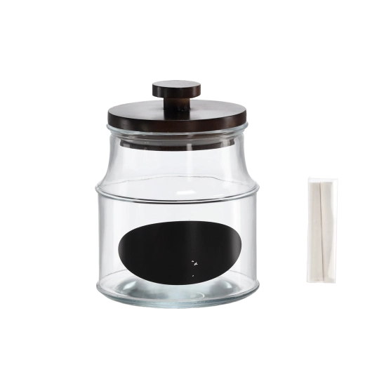 De 1,9 l pot met groot volume is een ideale oplossing voor het dagelijks bewaren van etenswaren en zelfgemaakte creaties. Dankzij het houten deksel blijft de inhoud langer vers en beschermd tegen vocht en geuren. Het meegeleverde etiket met schrijfmogelijkheid en het krijt helpen je overzicht te houden en snel te herkennen wat erin zit.