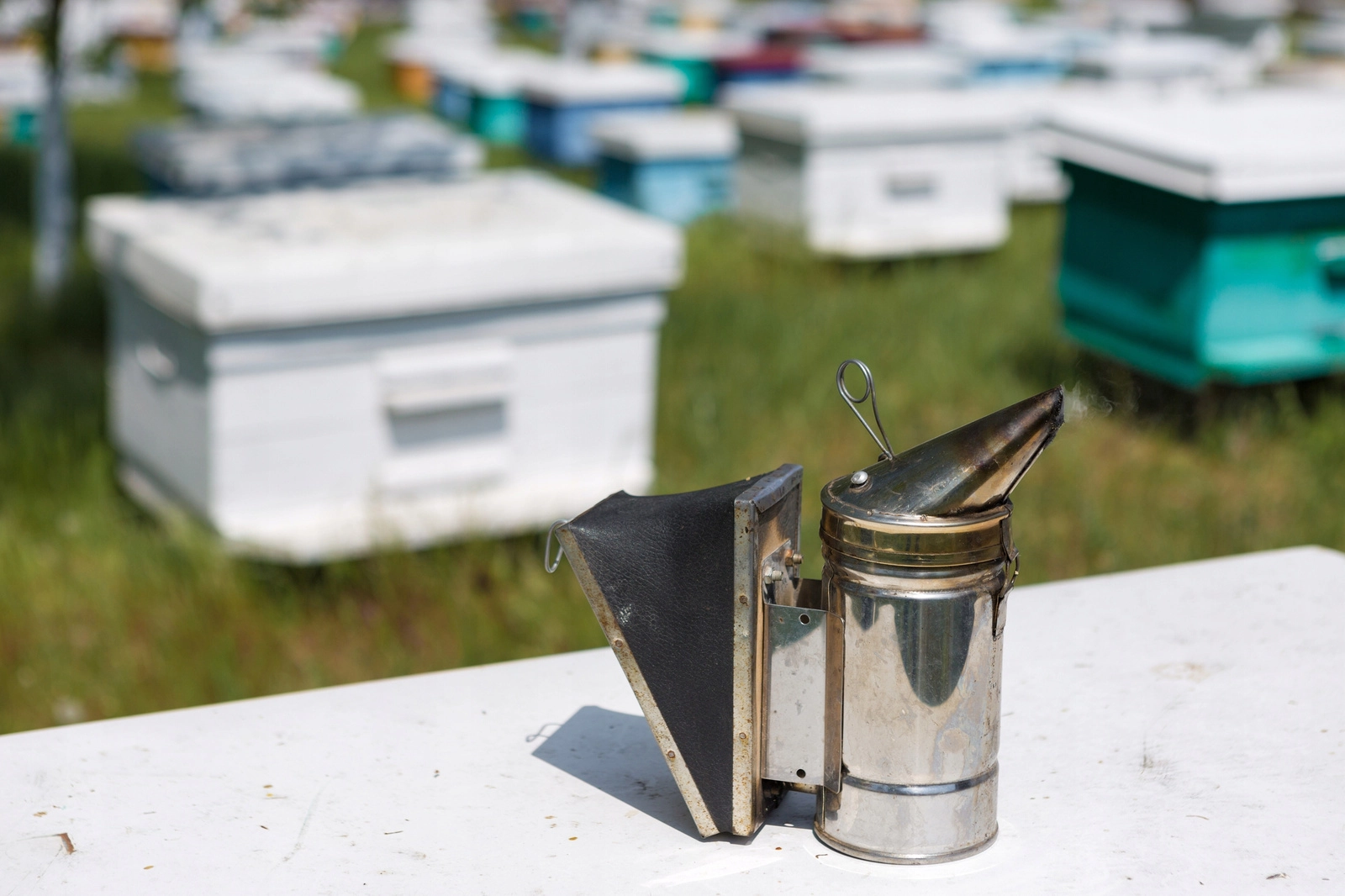 De natuurlijke leren blaasbalg creëert een stabiele rookstroom voor snel en zacht kalmeren van de bijen tijdens inspecties.