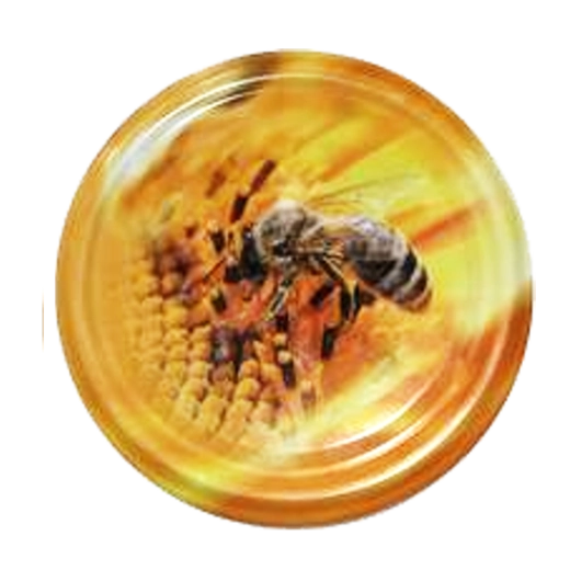 Praktisch schroefdeksel in maat fi82, perfect voor potten met honing, jam, ingelegde groenten en andere lekkernijen. Het bijenmotief geeft elke pot een verleidelijk uiterlijk en ondersteunt zowel de verkoop als cadeauverpakkingen van huisgemaakte heerlijkheden.