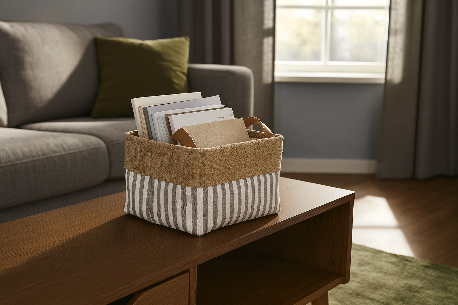 Het minimalistische gestreepte patroon oogt schoon en luchtig en laat zich moeiteloos combineren met diverse inrichtingsstijlen. De compacte afmetingen 20 × 30 × 18 cm maken efficiënt ruimtegebruik mogelijk in kasten en op planken, waar hij helpt perfect orde te houden.