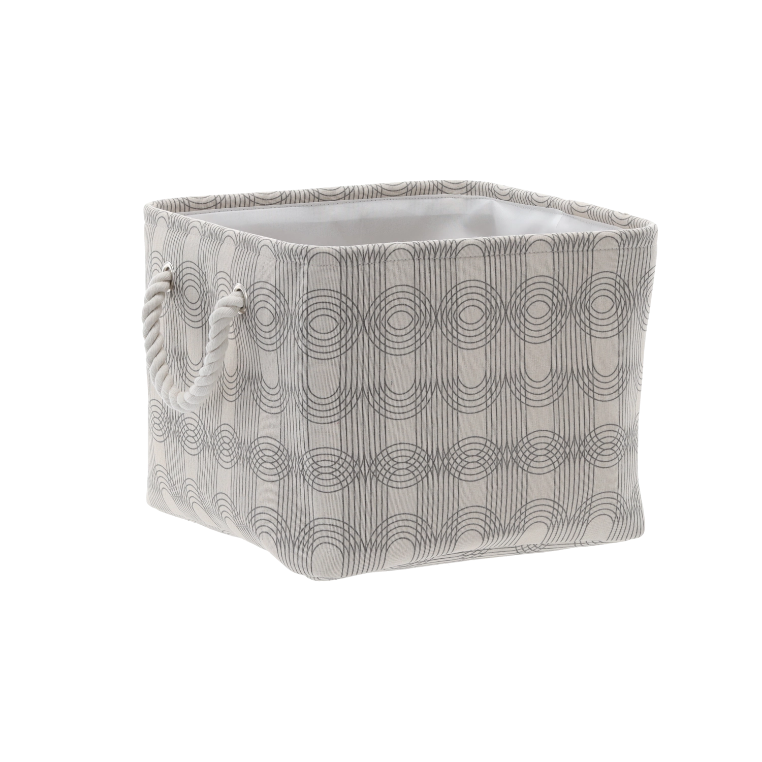 De touwgrepen maken comfortabel dragen mogelijk, of de box nu leeg of vol is. Het grijze geometrische patroon en de decoratieve voering geven je ruimte een nette, opgeruimde uitstraling. Ideaal voor de woonkamer, slaapkamer, badkamer, kinderkamer en werkkamer.