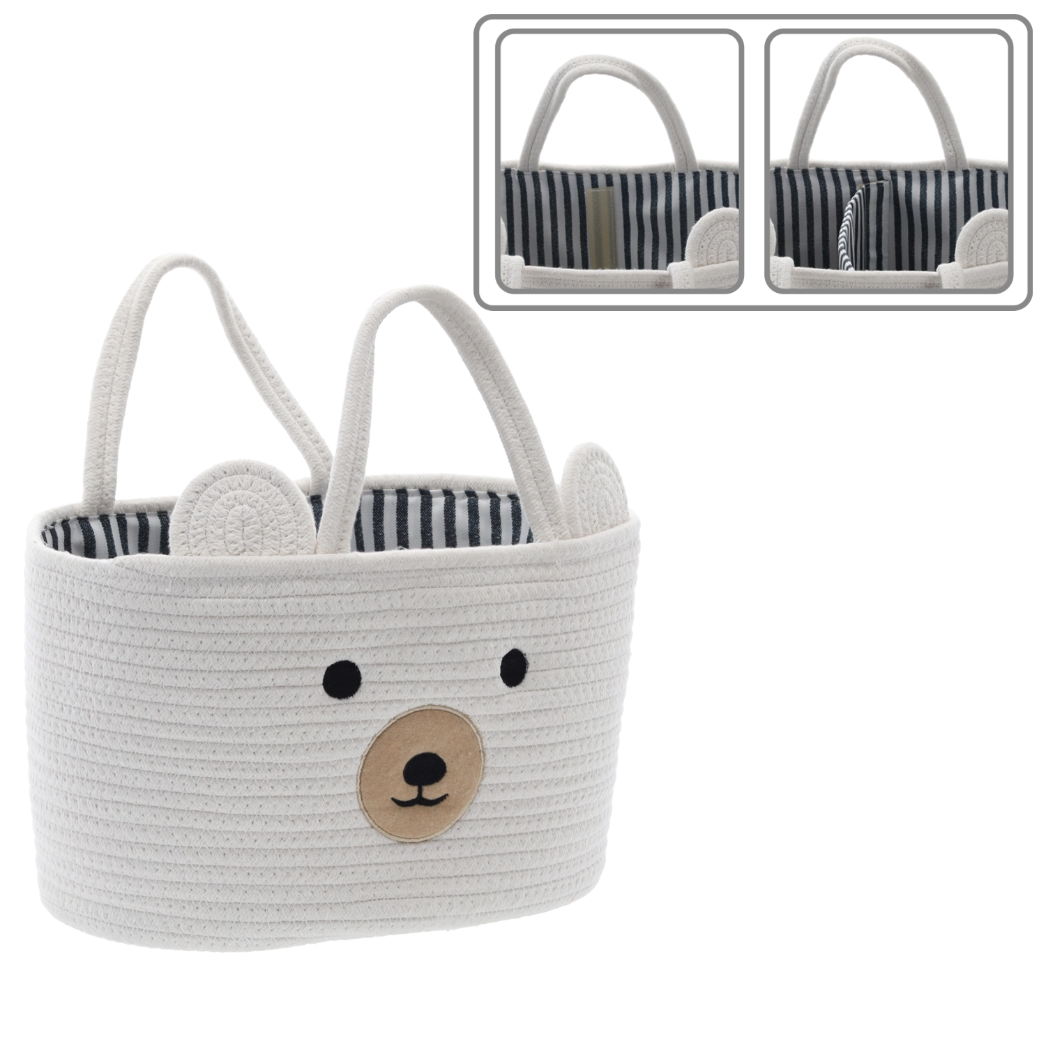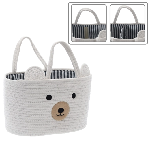 Ontdek stijlvolle en veilige opslag met deze witte textiele mand met oortjes en een lief dierengezichtje. De neutrale kleur past in de kinderkamer, slaapkamer en woonkamer en versterkt de gezellige sfeer in huis. Dankzij de stevige zijkanten en het lichte ontwerp is hij perfect voor dagelijks gebruik en eenvoudig te verplaatsen.