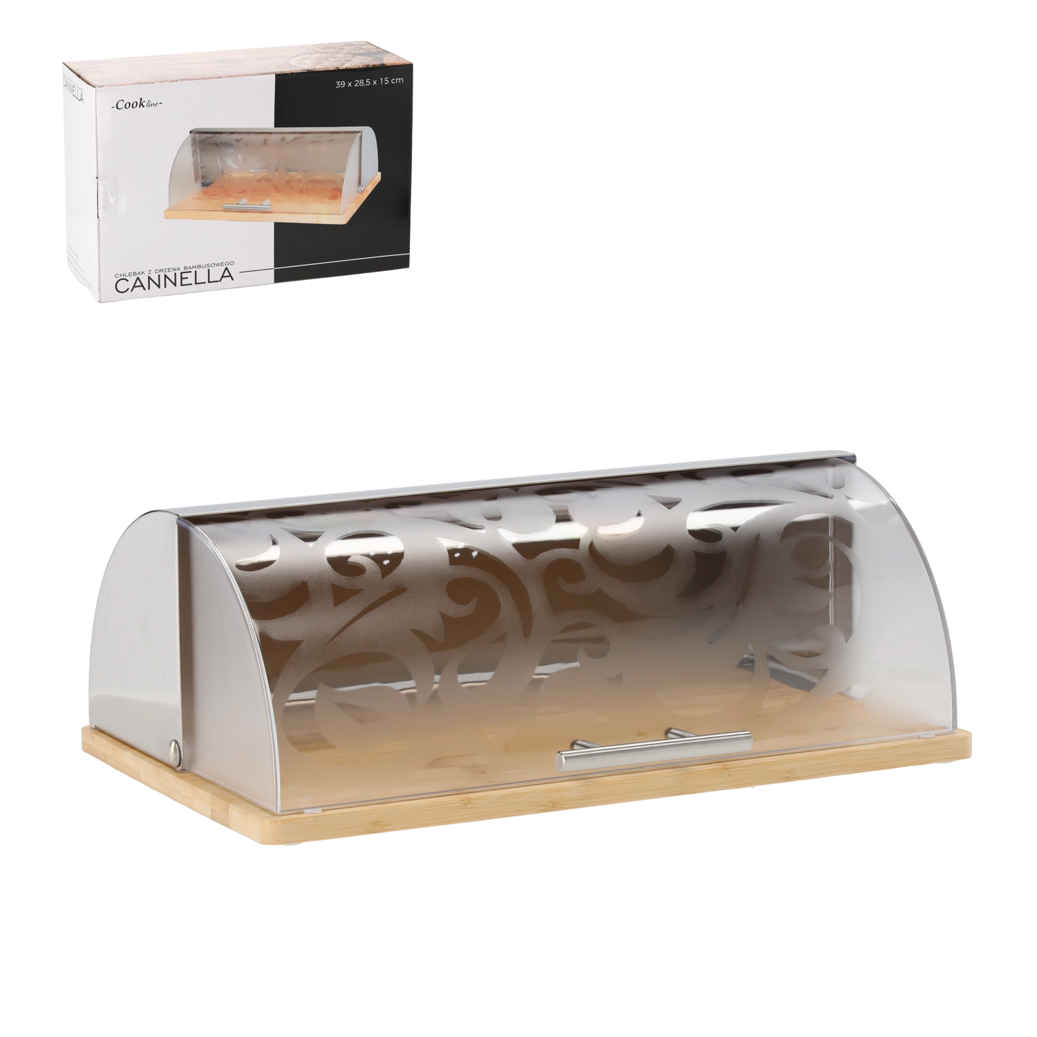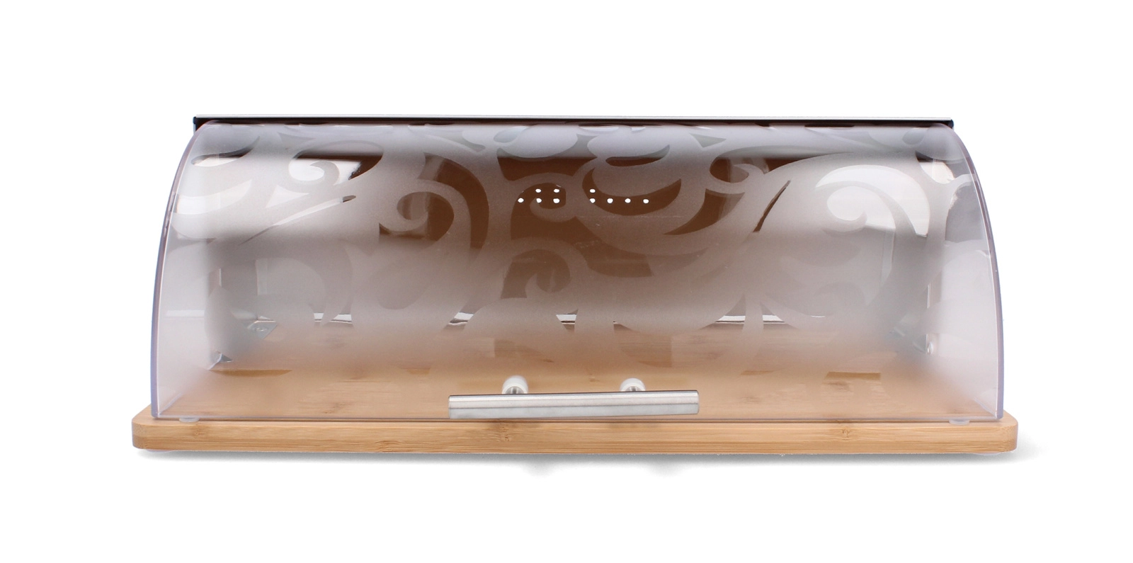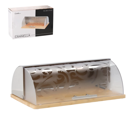 De elegante broodtrommel CANELLA combineert natuurlijk bamboe met een transparant acryl rolluikdeksel met subtiele decoratie. Dankzij de ventilatieopeningen blijft brood langer vers, de comfortabele rollende opening zorgt voor snelle toegang en de stabiele bamboe basis geeft je keuken stijl en orde.