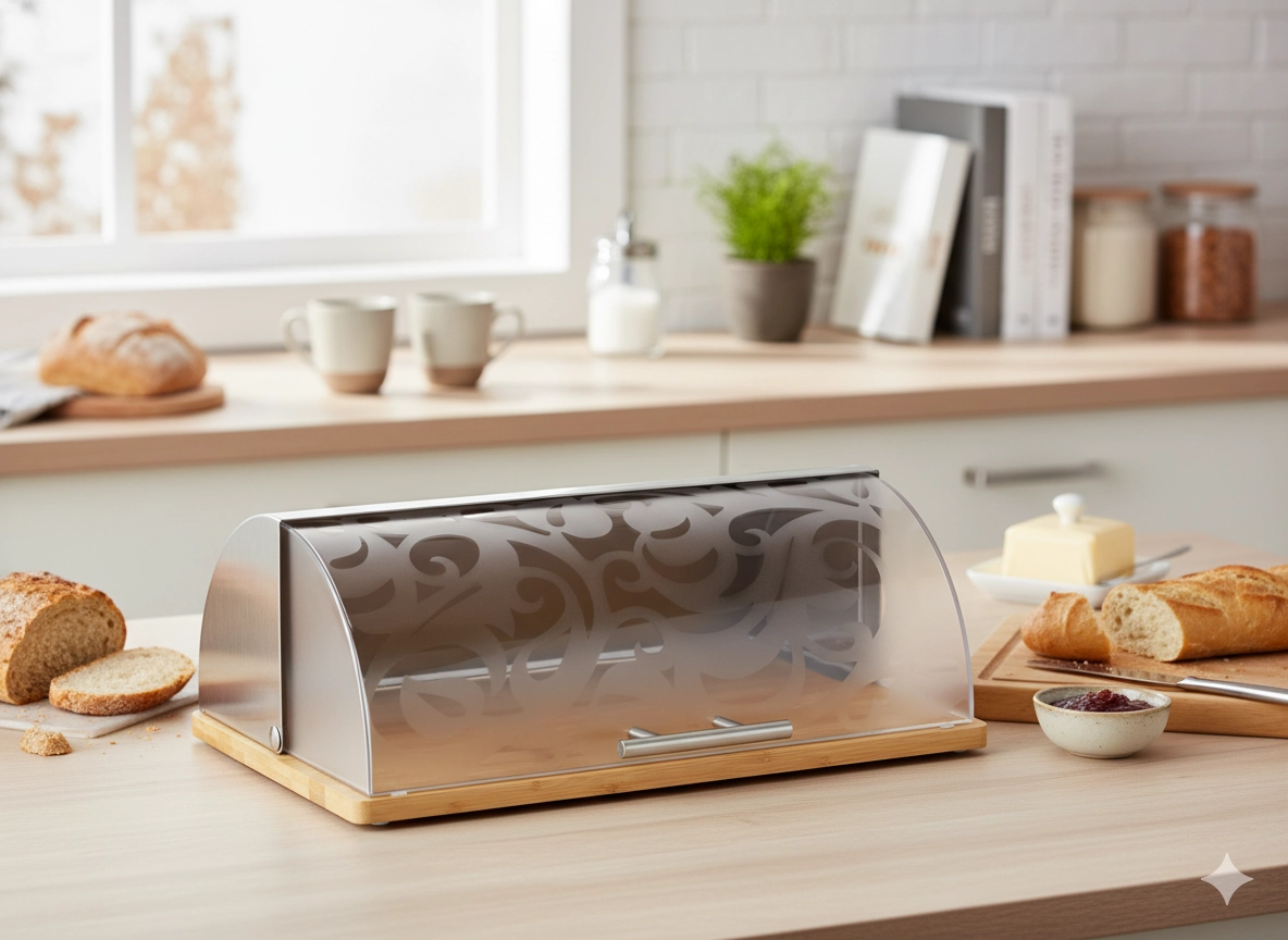 Geïntegreerde ventilatieopeningen in het deksel zorgen voor de juiste luchtcirculatie, waardoor uitdroging en vochtigheid van het brood worden voorkomen – voor een langere houdbaarheid en betere smaak.