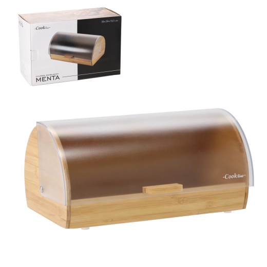 Elegante broodtrommel MENTA van hoogwaardige bamboe met een halftransparant rolluikdeksel dat brood en gebak langer vers houdt, beschermd tegen stof en uitdroging. Het royale volume biedt plaats aan een heel brood, broodjes en gebak, terwijl de ergonomische greep zorgt voor comfortabel openen. Het tijdloze moderne design past perfect in elke keuken.