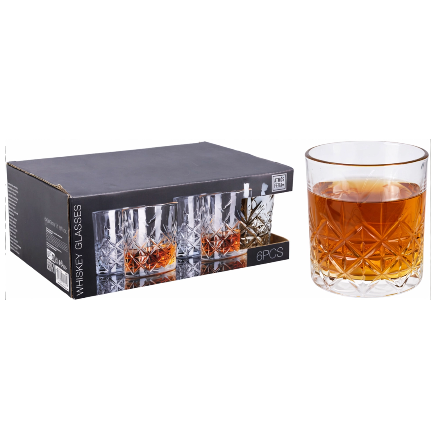 Elegante set van 6 glazen met een inhoud van 340 ml, ideaal voor water, sap en alcoholvrije cocktails. Het tijdloze, klassieke design past perfect bij dagelijks gebruik en sociale gelegenheden en is eenvoudig te combineren met ander servies.