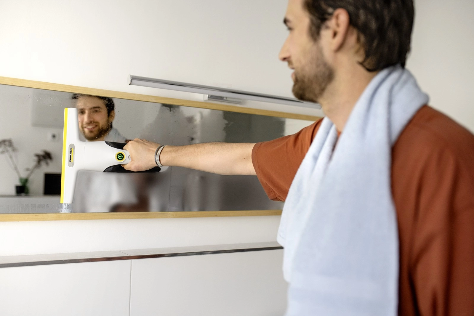 De Kärcher WV 2 Universal Care is een veelzijdige helper voor snel en hygiënisch reinigen van ramen, spiegels, douches, tegels en andere gladde oppervlakken. Hij combineert een sproeifles met microvezelhoes en elektrische afzuiging, zodat je tot 3× sneller schoonmaakt dan met gangbare methoden – zonder druppels, strepen en onnodige rommel.