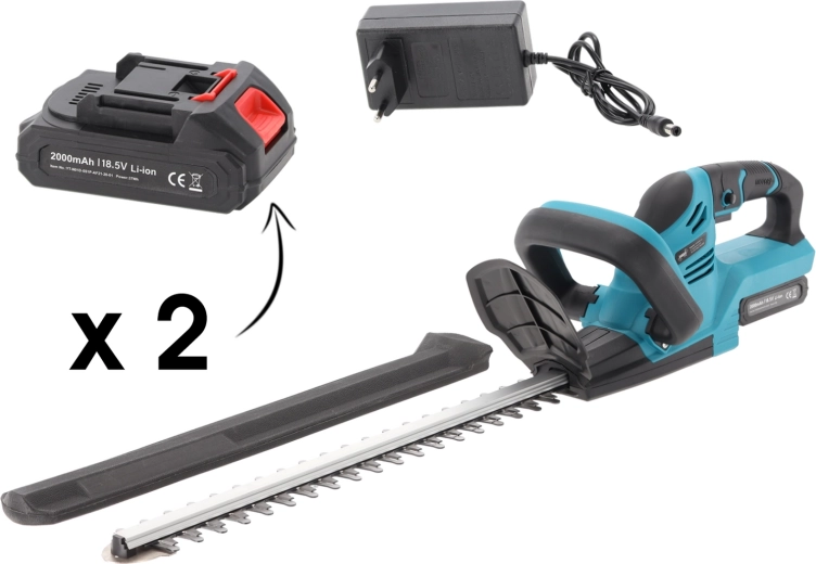 De krachtige motor en hoogwaardige, dubbelzijdige messen zorgen voor een schone snede van takken tot 15 mm. Twee 2000 mAh accu’s verlengen de werktijd, zodat u eenvoudig grotere hegvlakken en dichtere begroeiing aanpakt zonder vaak op te laden.