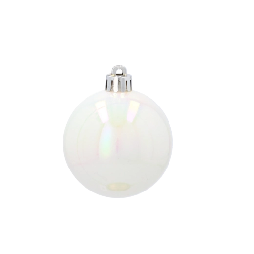 De set omvat matte, glanzende parelmoer- en facetballen die samen een elegante en harmonieuze contrastwerking in de boom creëren.