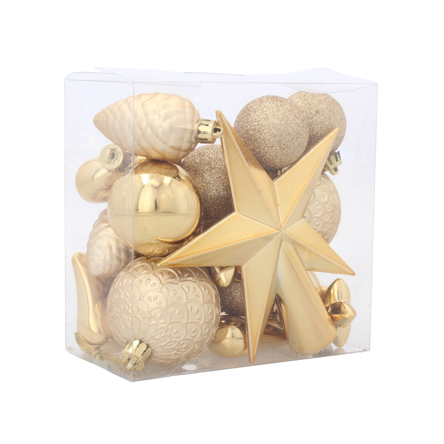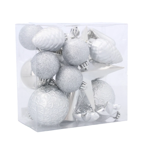 De ornamenten zijn gemaakt van licht en duurzaam kunststof, waardoor ze eenvoudig op te hangen zijn, goed aan de takken blijven zitten en veilig zijn in huishoudens met kinderen of huisdieren. Dankzij de diverse vormen – van ballen tot hartjes en dennenappels tot sterren – maak je moeiteloos een rijke en uitgebalanceerde compositie.
