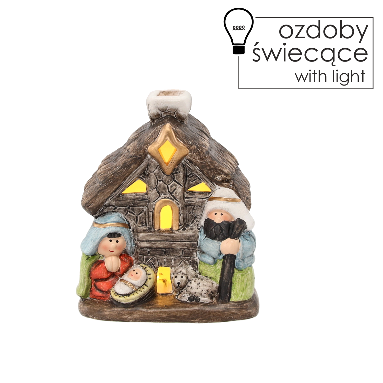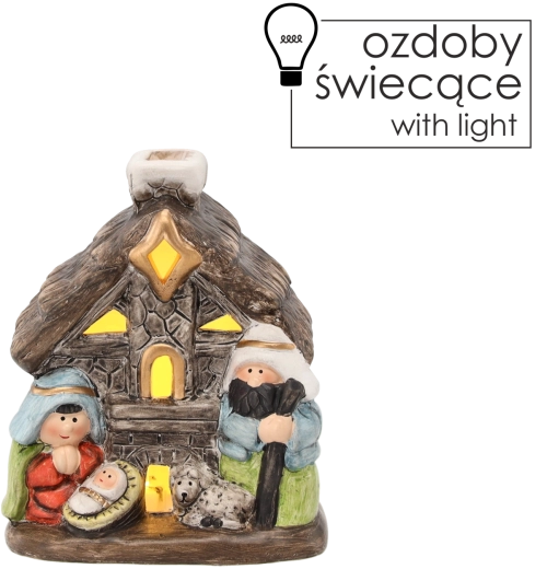 Deze charmante kerststal in de vorm van een stenen huisje toont de Heilige Familie met fijne details, inclusief een schaapje dat de rustige en traditionele sfeer benadrukt. De geïntegreerde LED-achtergrondverlichting geeft de decoratie een warme gloed en tovert een plank, dressoir of feestelijke tafel om tot een knusse plek.