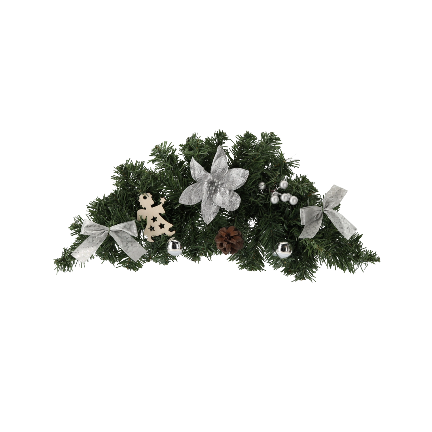 Elegante hangende kerstdecoratie van 46 cm in een zilverkleurige uitvoering die je huis een feestelijke sfeer geeft. Dankzij het universele design plaats je haar eenvoudig aan deuren, muren en ramen, waar ze uitblinkt door haar glans en subtiele elegantie.