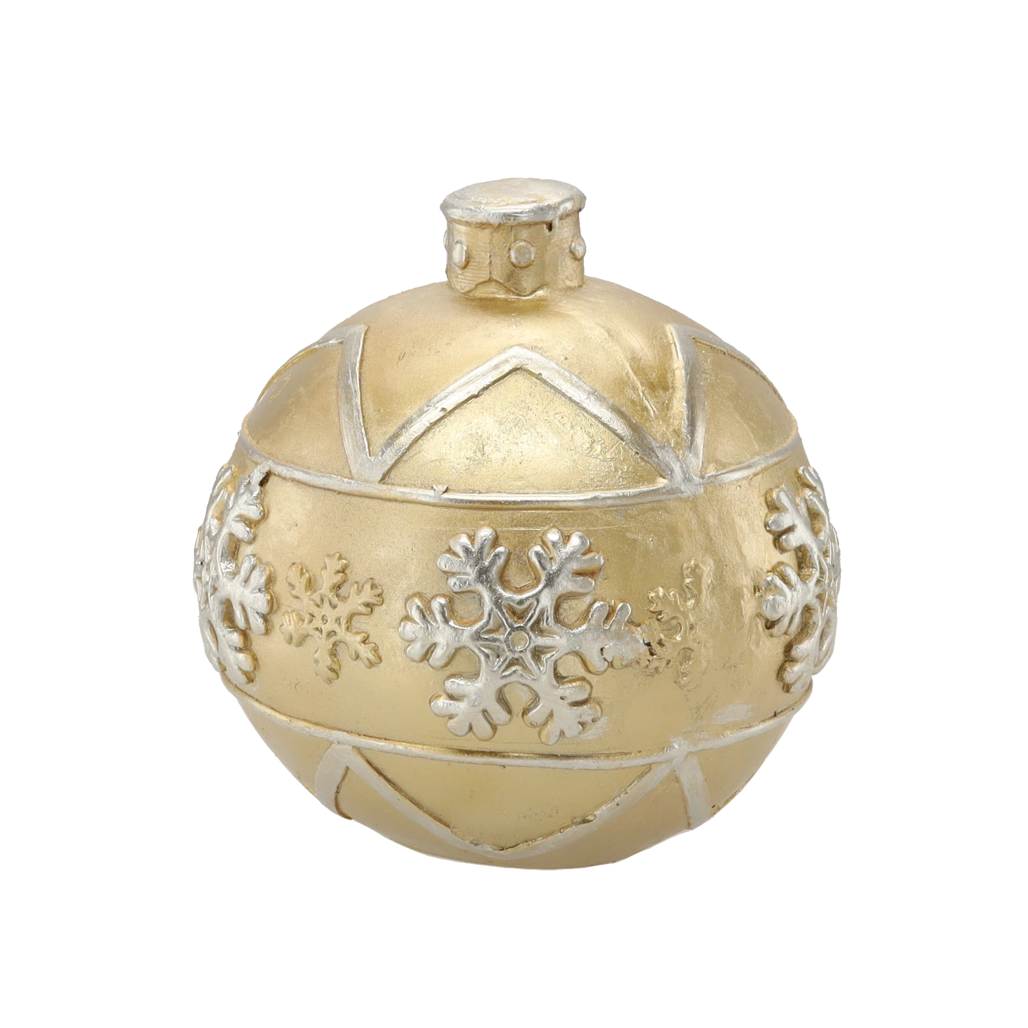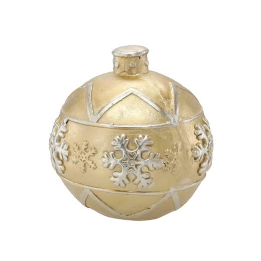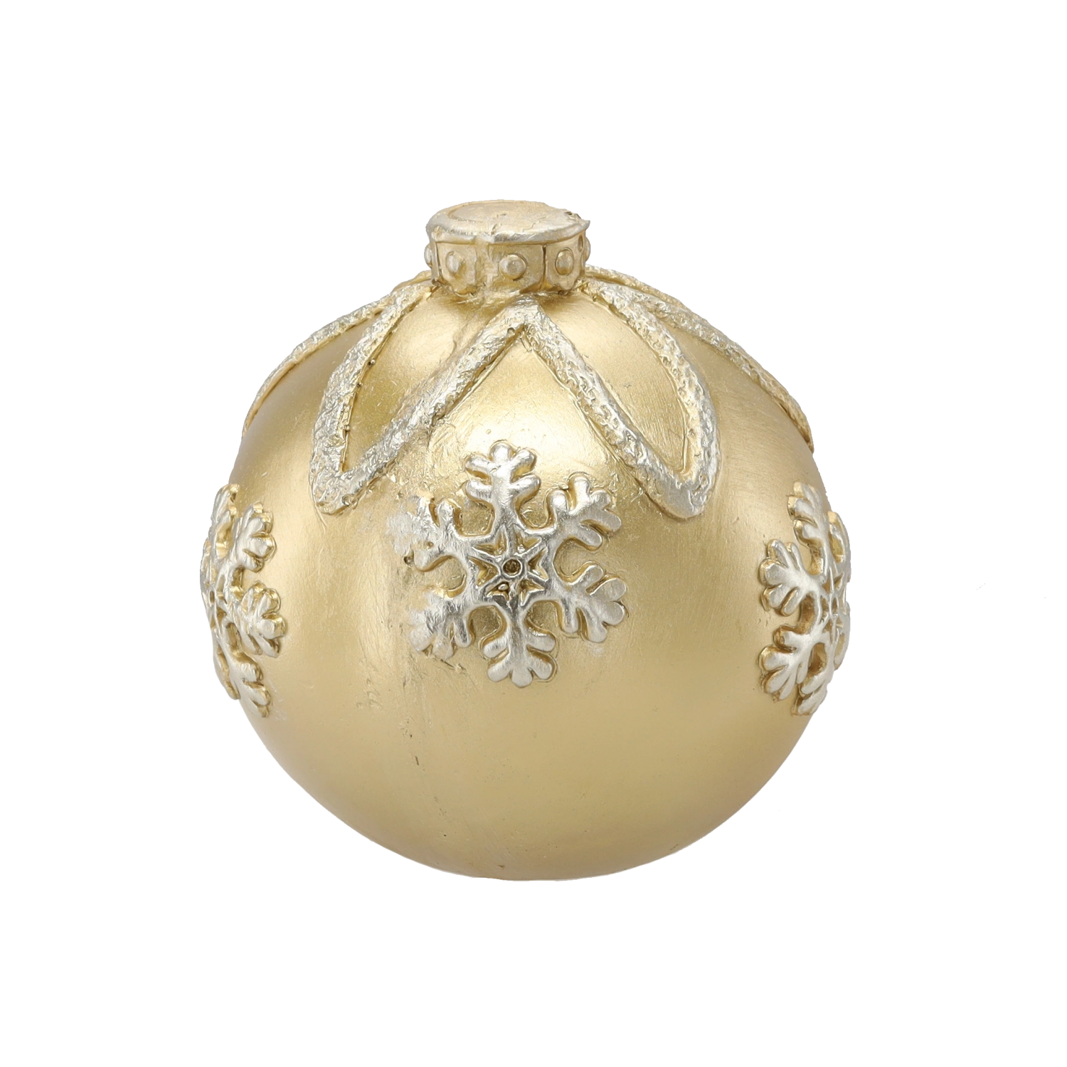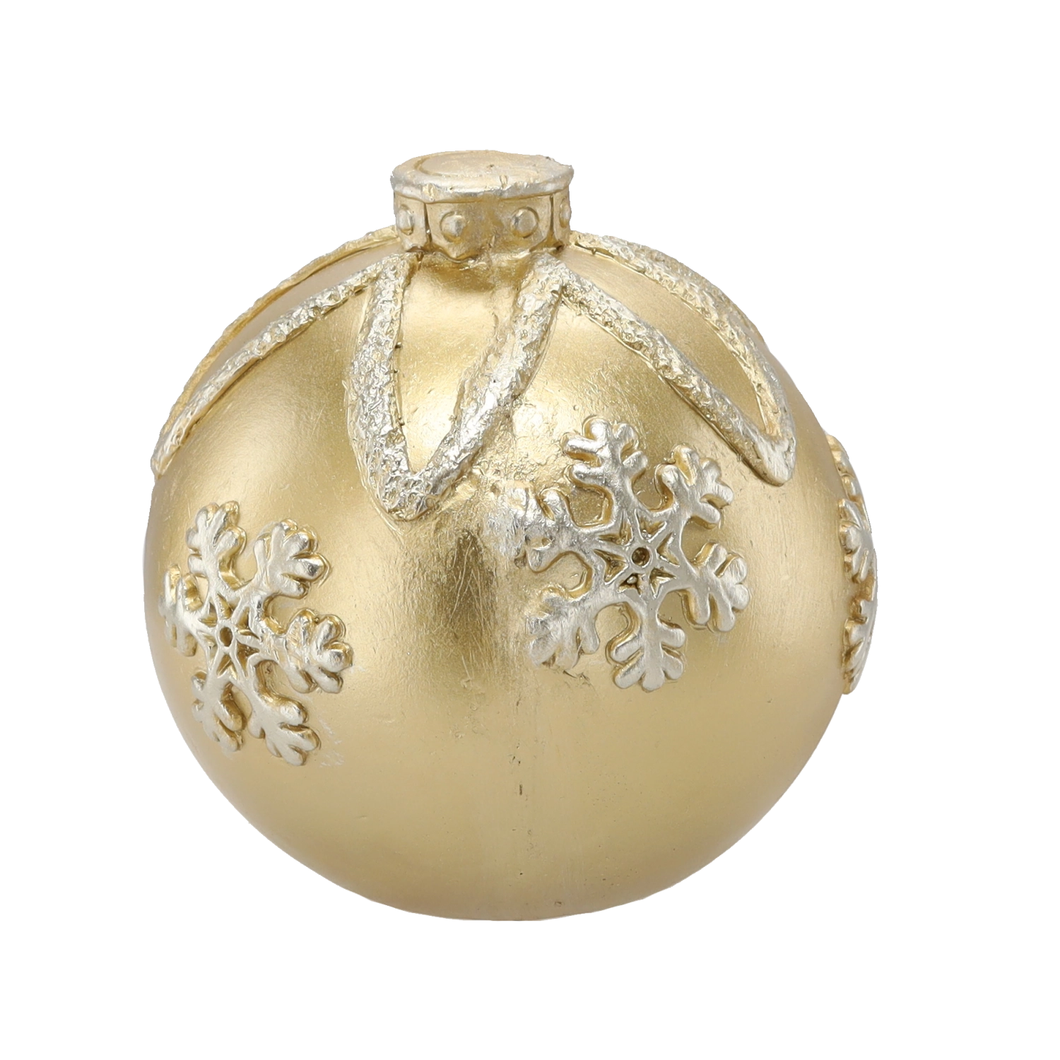 Elegante gouden kerstbal met een diameter van 21,5 cm die uw huis een feestelijke sfeer geeft. Het glanzende oppervlak en de reliëfpatronen van sneeuwvlokken maken er een opvallende decoratie van voor grotere kerstbomen en voor losse arrangementen. Gemaakt van hoogwaardig, duurzaam materiaal voor een lange levensduur.