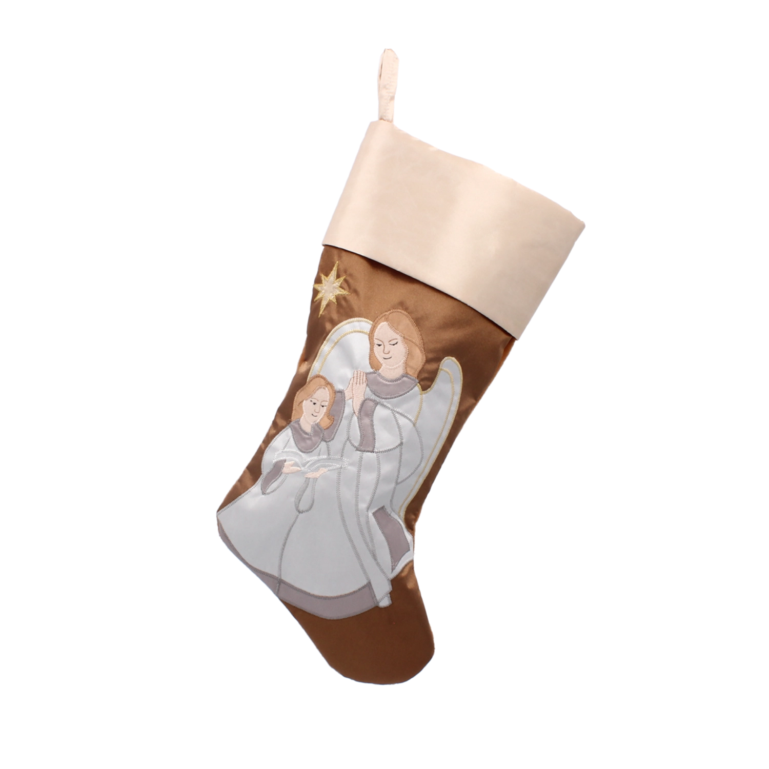 Creëer thuis de echte feestelijke sfeer met een elegante kerstsok versierd met engelen. Hoogwaardige textiele afwerking, zorgvuldige applicaties en een zachte stof zorgen voor een lange levensduur en een prachtige uitstraling, seizoen na seizoen. De praktische lus maakt eenvoudig ophangen aan schouw, balustrade of haak mogelijk.