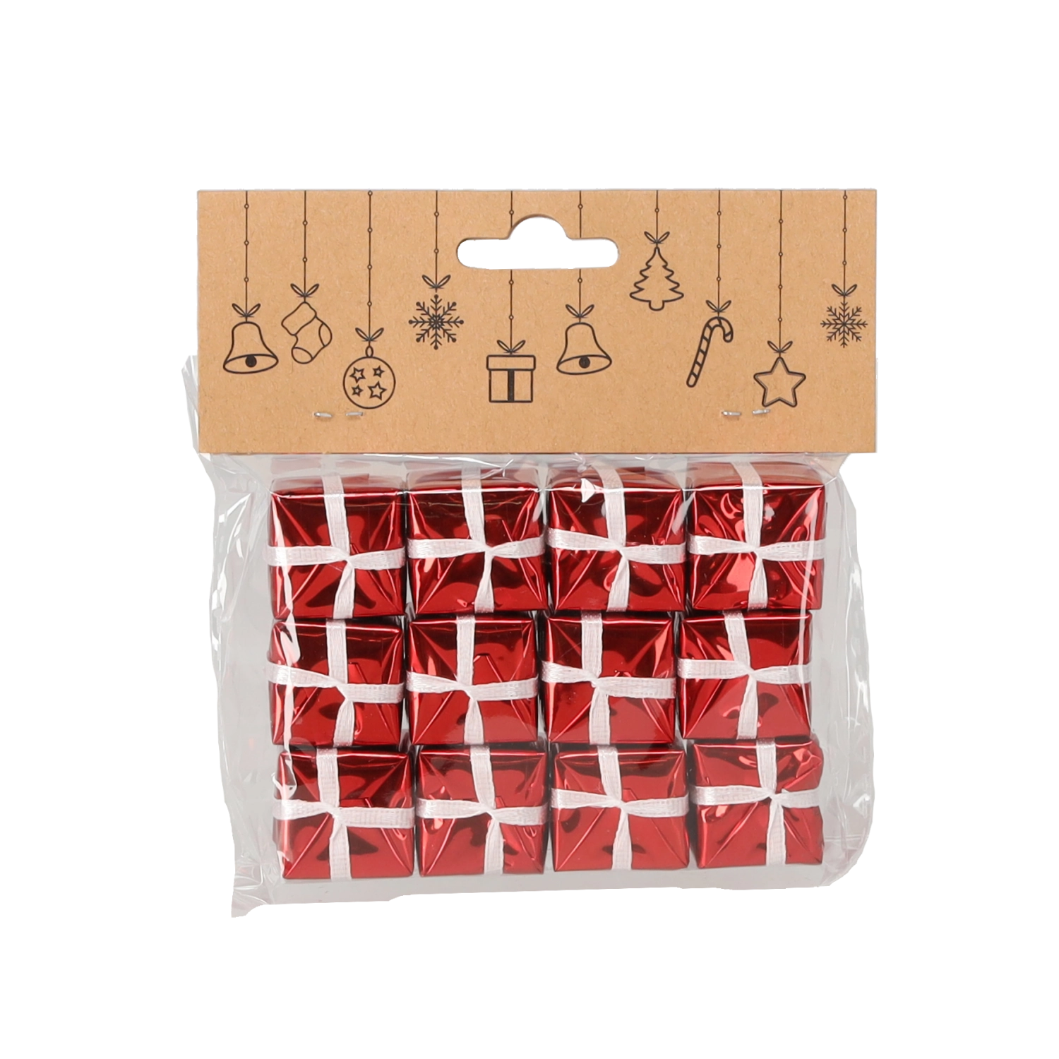 Set van 12 kerstornamenten in de vorm van cadeautjes 2,5 cm