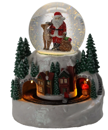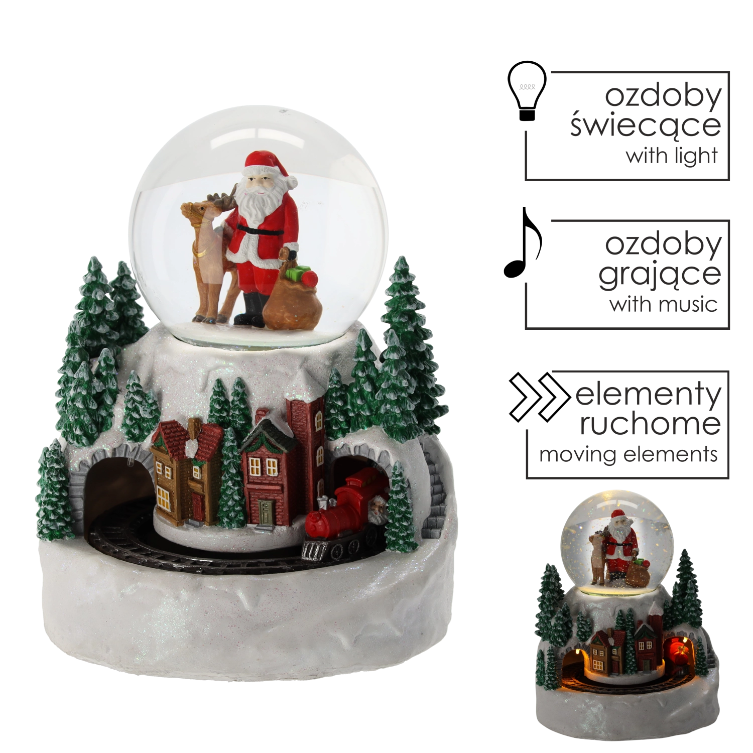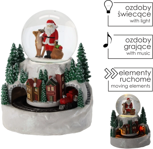 Deze gedetailleerd vormgegeven sneeuwbol met de KERSTMAN en een winterdorpje betovert zowel volwassenen als kinderen. Het geïntegreerde LED-licht zorgt voor een warme gloed, terwijl het mini-treintje rond de voet rijdt en de scène tot leven brengt. De decoratie biedt 3 bedrijfsmodi, zodat je kunt genieten van licht en beweging met muziek of in stille modus.