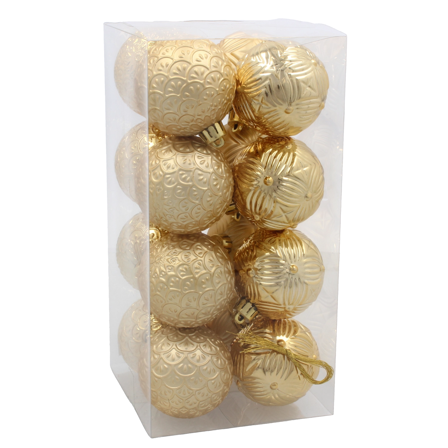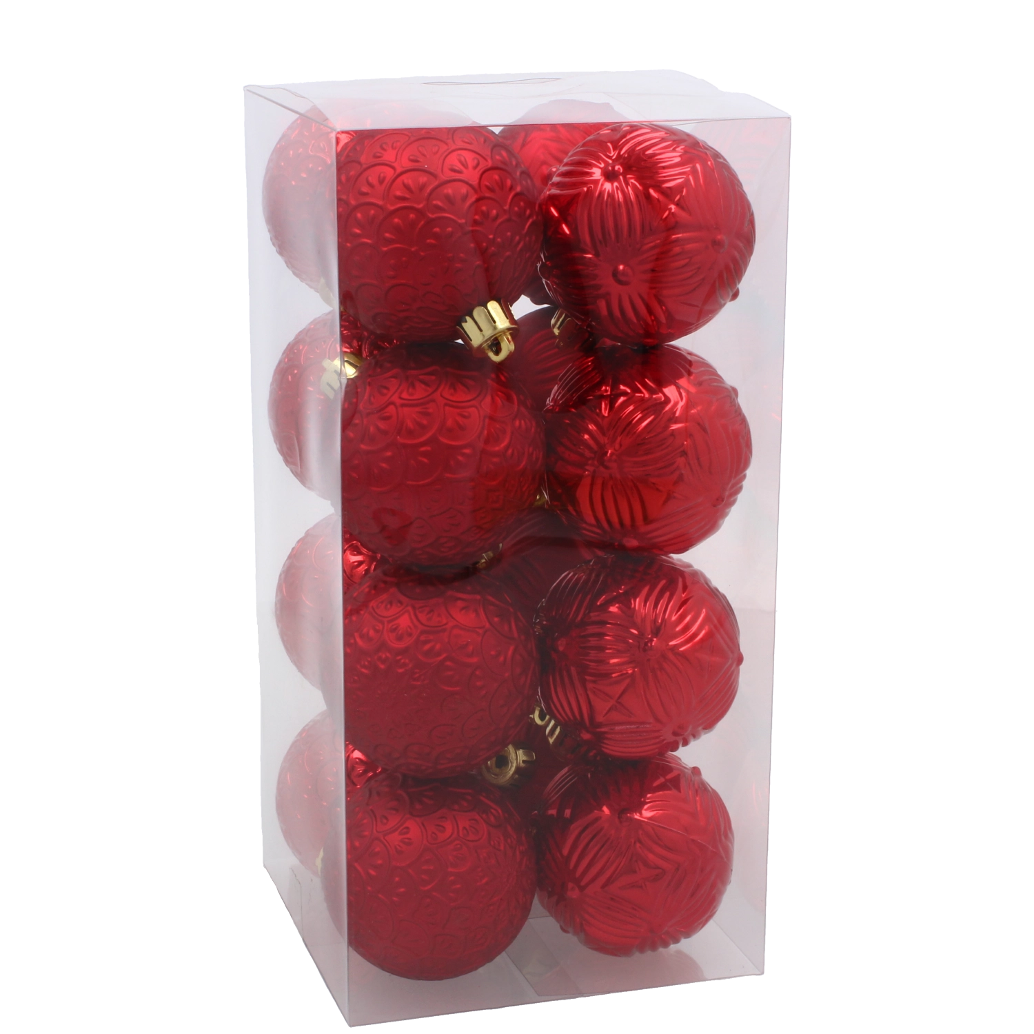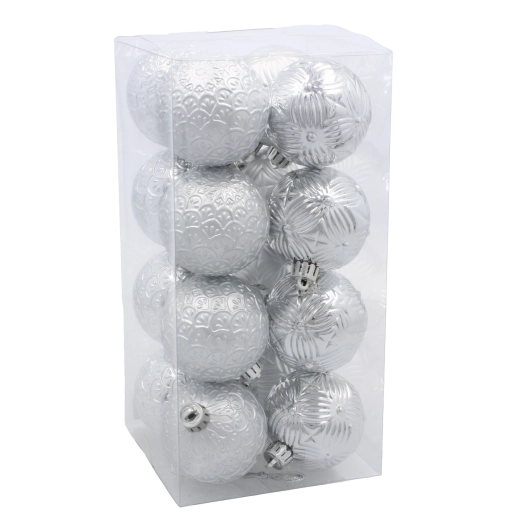 Deze veelzijdige set versieringen in de harmonieuze kleuren rood, goud en zilver zorgt direct voor een feestelijke sfeer. Elke bal is licht, heeft een reliëfdecor en is voorzien van een metalen kapje met lint voor eenvoudig ophangen aan takken, kransen of guirlandes. Het duurzame plastic zorgt voor een lange levensduur, ook bij veelvuldig gebruik.