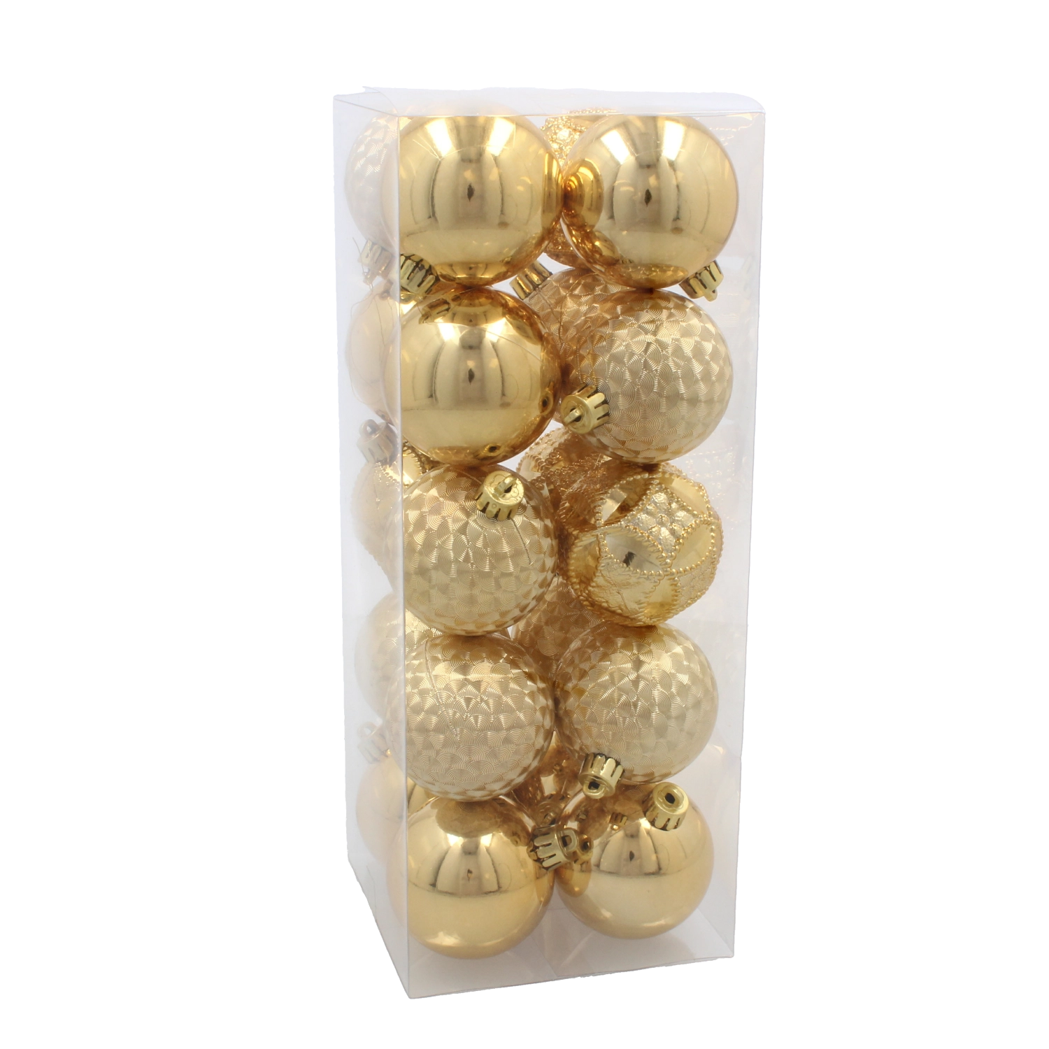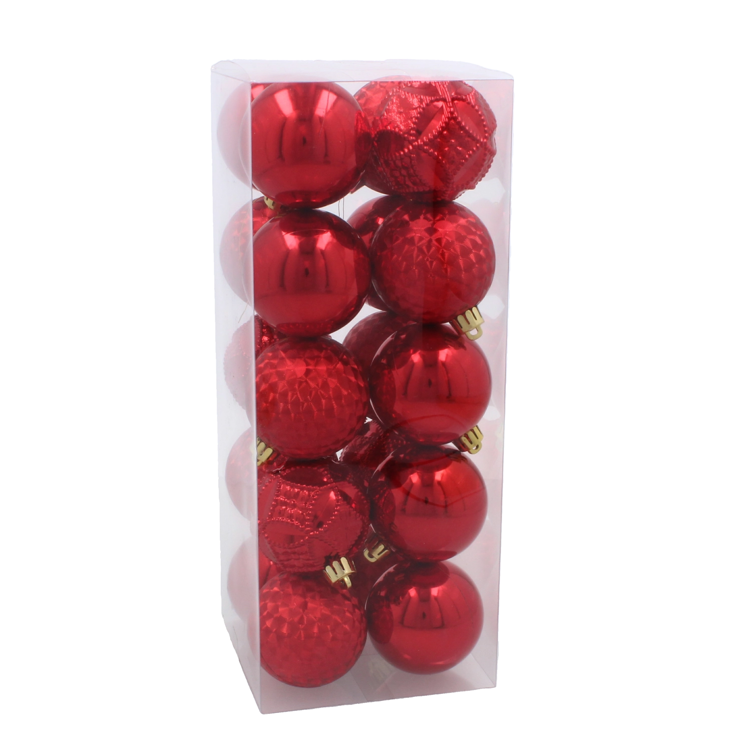 Creëer thuis een betoverende kerstsfeer met deze set veelzijdige ornamenten, die dankzij de diameter van 6 cm perfect geschikt zijn voor zowel kleinere als grotere bomen. De combinatie van rood, goud en zilver zorgt voor een traditioneel uiterlijk dat eenvoudig te matchen is met andere decoraties.