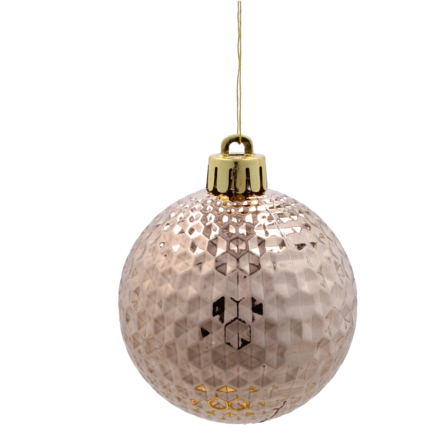 Deze stijlvolle set kerstornamenten biedt een harmonieuze mix van granaat en beige-goud, die samen een tijdloze en elegante uitstraling creëren. De ballen zijn gemaakt van hoogwaardig kunststof, waardoor ze bestand zijn tegen breuk en bovendien zeer licht zijn voor eenvoudig ophangen aan takken van elke boom.