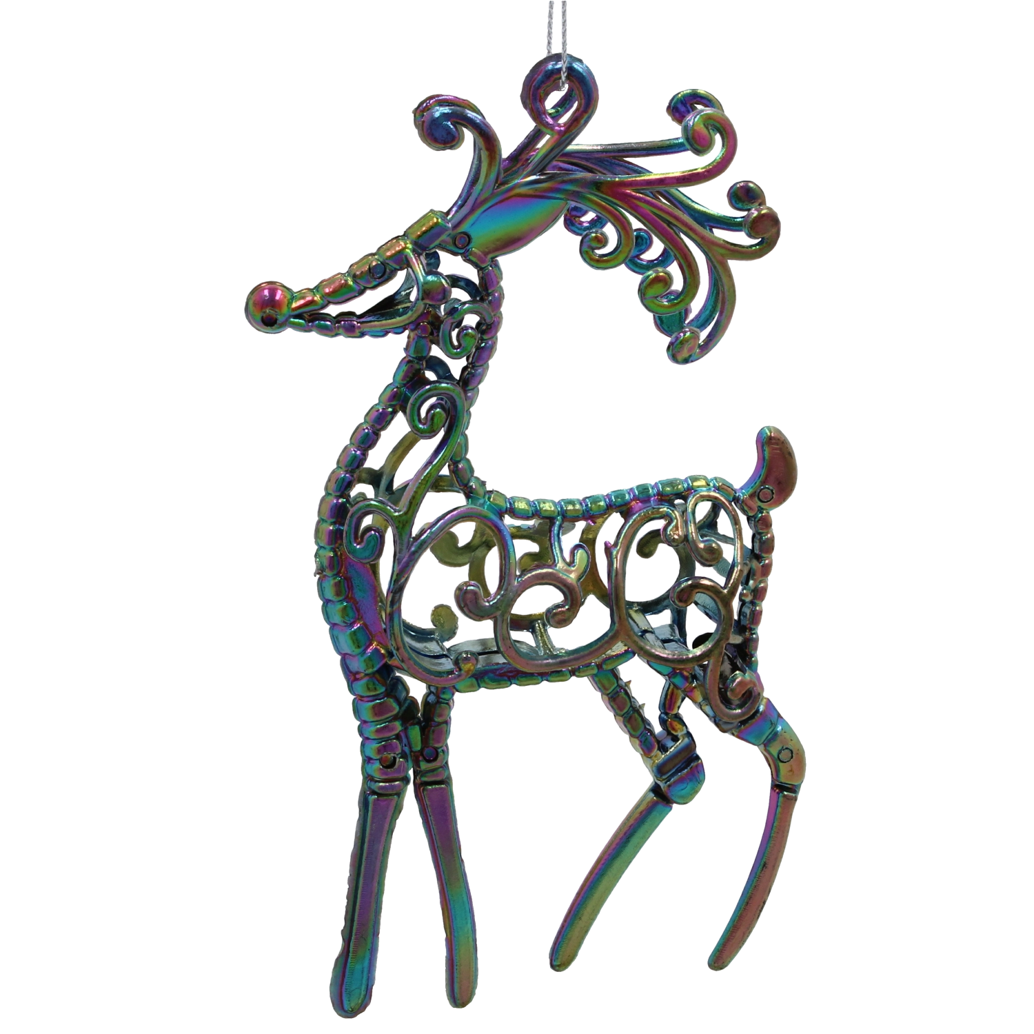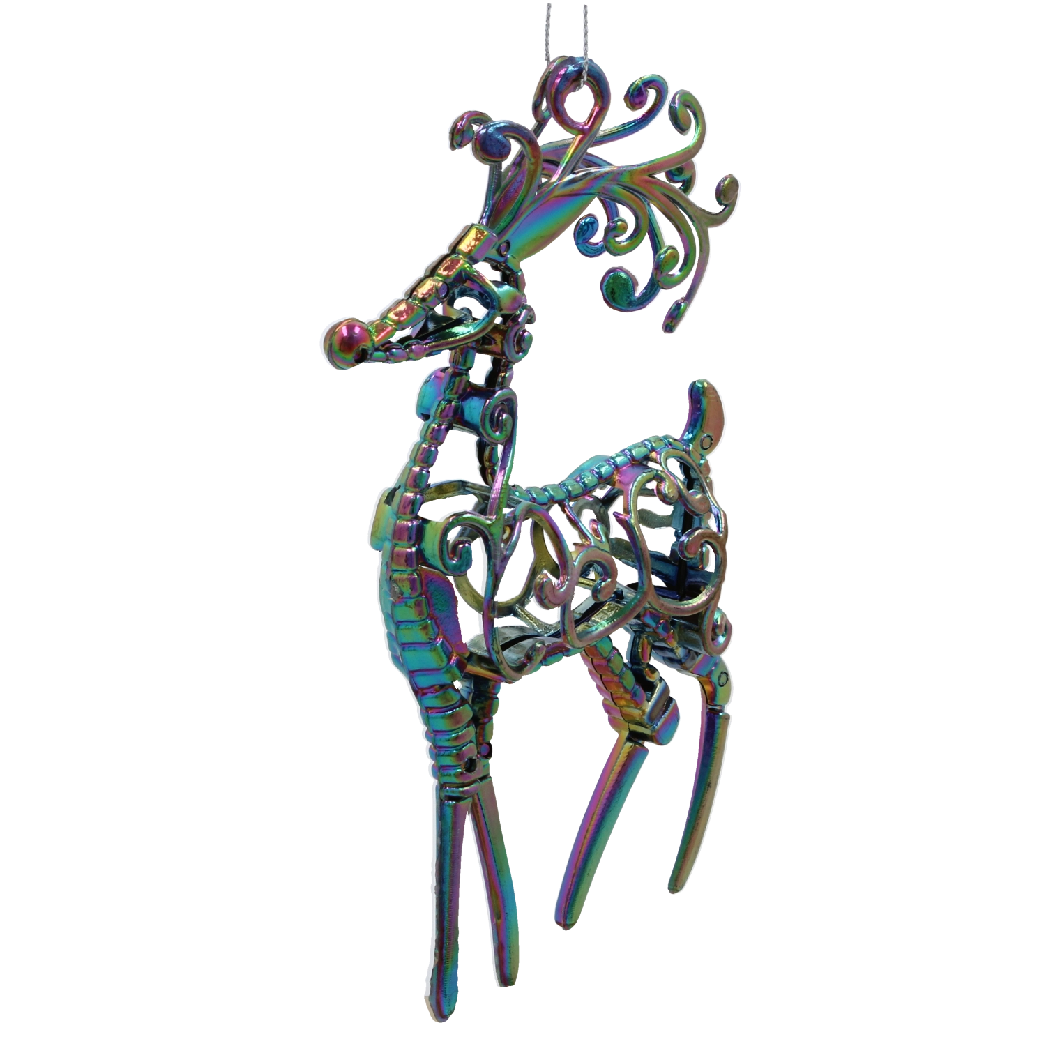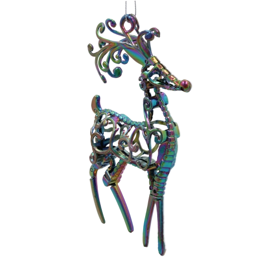 Breng extra flair in je kerstdecor met een decoratieve rendierhanger met olie-regenboogeffect. Het speciale oppervlak creëert bij lichtinval wisselende kleurreflecties die de schoonheid van de boom en feestelijke decoraties benadrukken.