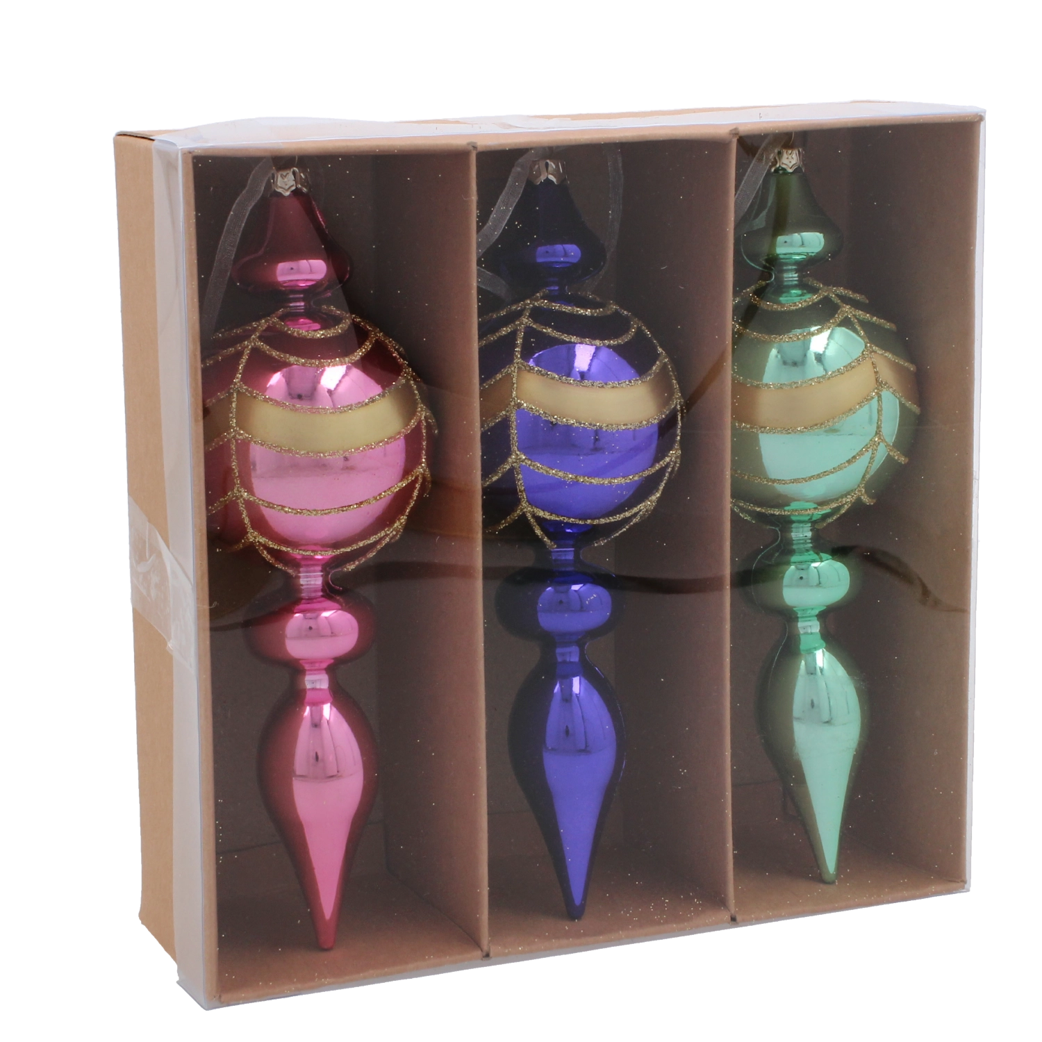 Creëer een betoverende verticale accentlijn in de boom met deze set van drie pieken van 17 cm. Dankzij het lichte en stevige plastic zijn ze makkelijk te hanteren en is er geen risico op versplinteren bij vallen. De mix van kleuren maakt eenvoudig combineren met ballen, slingers en lichtdecoraties mogelijk.