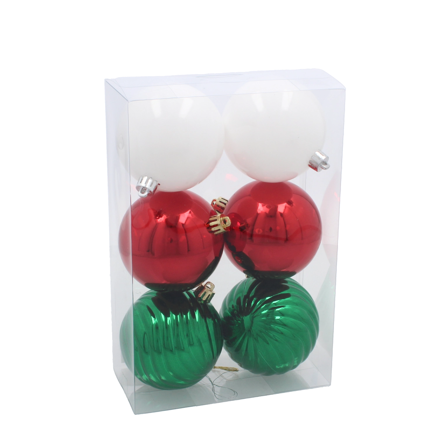 Set kerstballen 8 cm – rood, groen en wit, 6 stuks