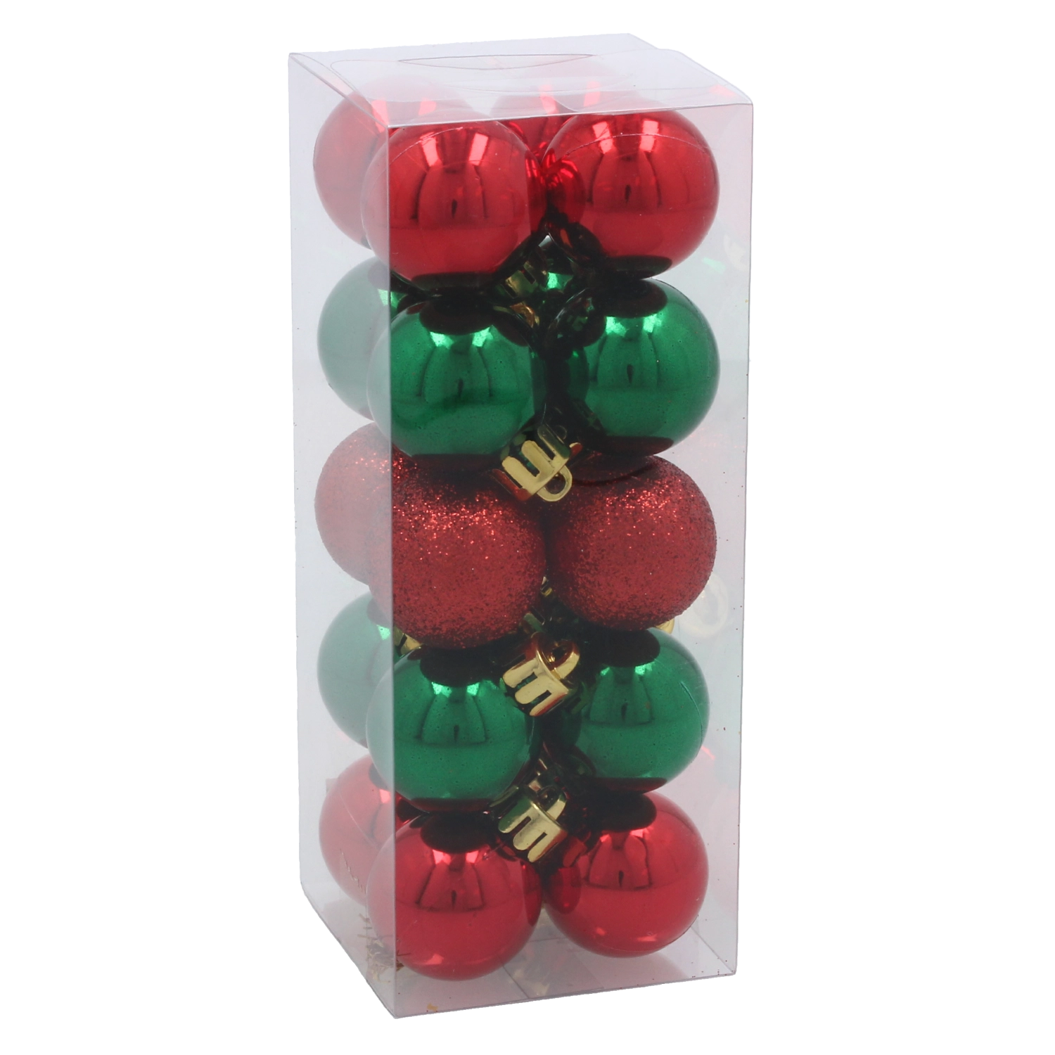 Deze set kerstballen van 3 cm in de klassieke combinatie van rood en groen geeft je boom en interieur een traditionele en elegante uitstraling. Licht maar duurzaam kunststof zorgt voor een lange levensduur, veilig gebruik en eenvoudige hantering.