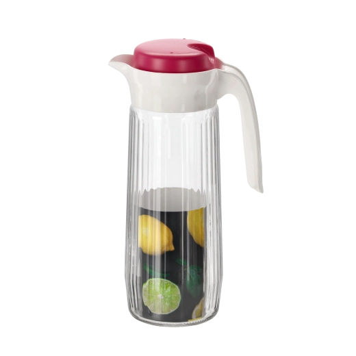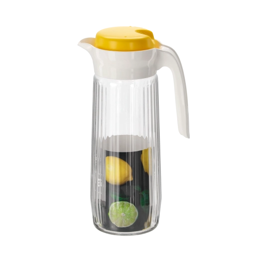Ontdek de praktische glazen kan met een inhoud van 1,5 liter, perfect voor het dagelijks serveren van dranken – van water en huisgemaakte limonades tot ijsthee. Het hoogwaardige, heldere glas weerstaat verkleuring en behoudt de frisheid en uitstraling van dranken, terwijl het afneembare PP-deksel de inhoud beschermt en het dragen en schenken vergemakkelijkt.