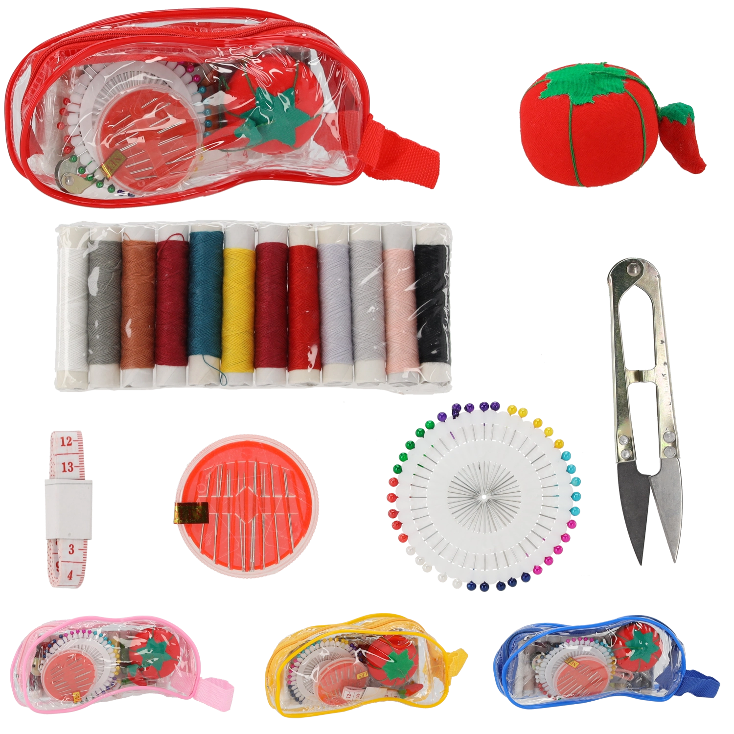 Praktische naaiset met 6 basisonderdelen voor snelle reparaties en creatief naaien, thuis en onderweg. Bevat 16 naalden, een meetlint van 150 cm, schaar, 12 klosjes garen van 10 m in verschillende kleuren, een naaldenboekje en 40 spelden met parelkop. Alles is overzichtelijk opgeborgen in een doorzichtig etui met rits voor gemakkelijk meenemen en organiseren.
